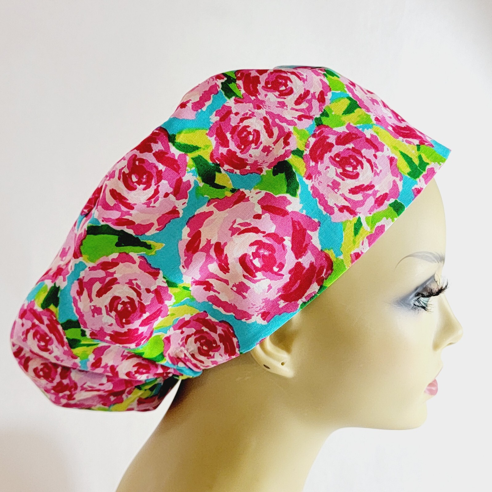 Women Scrub Hat, Surgical Cap, Nurses Hat, Pink, Floral, Medical, USA Made