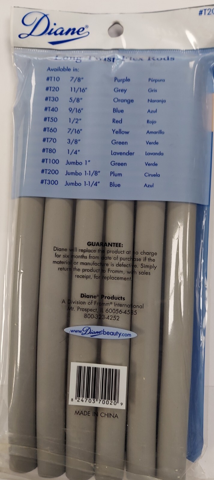 NEW Diane T20 Twist Flex Hair Perm Rods Grey 10 X 11/16 , 6PCS