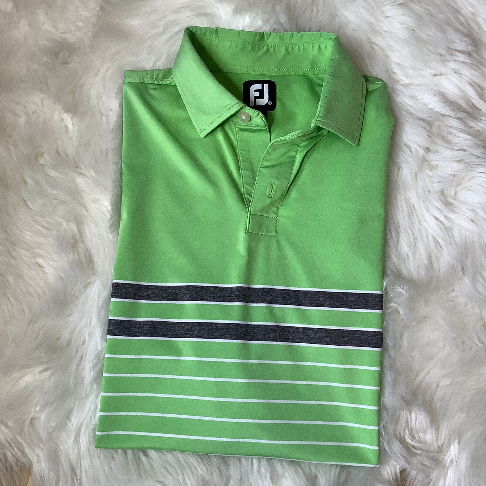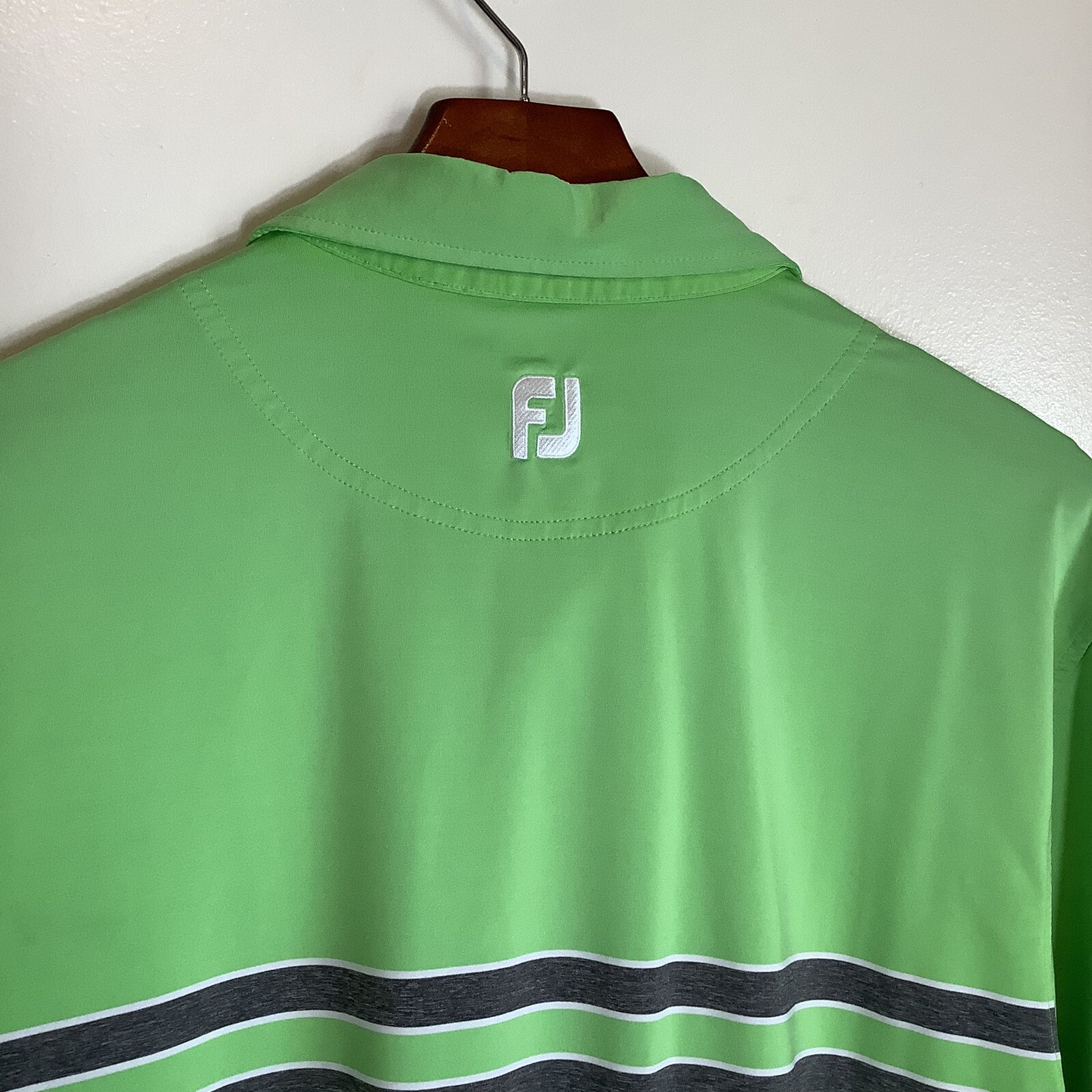 Footjoy Shirt Men's Size Large Green Gray Stripe Golf Polo FJ Short Sleeve Top