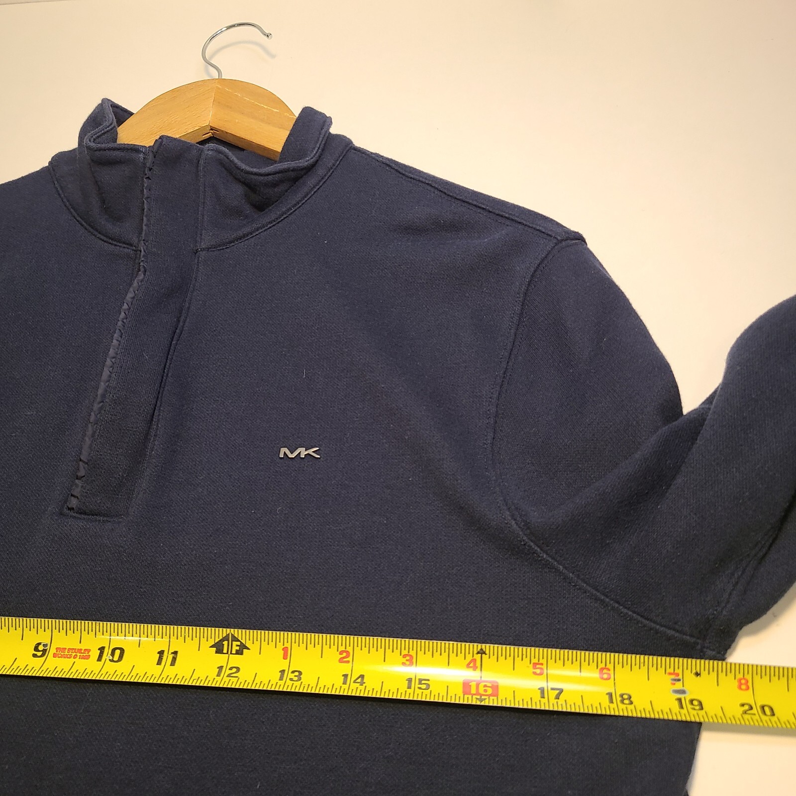 Michael Kors Men's Blue 1/4 Zip Long Sleeve Pullover Sweater Medium Elbow Patch