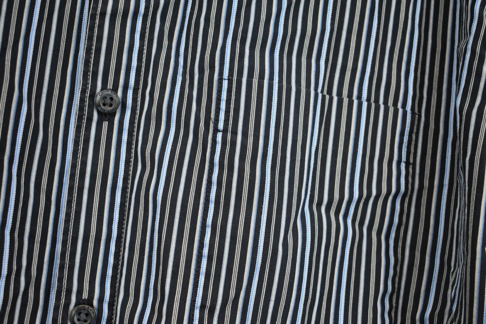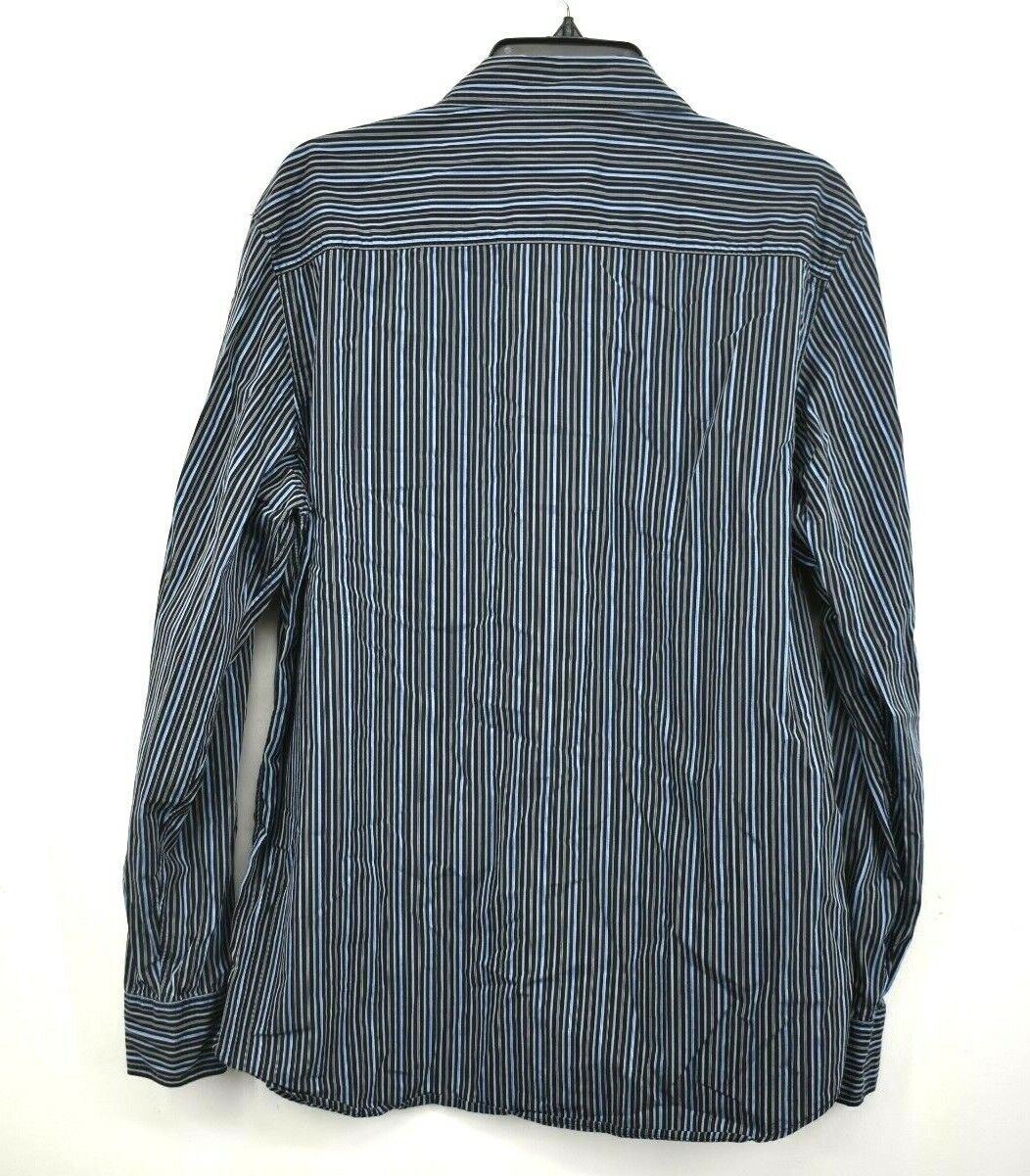 Calvin Klein Mens Cotton Garment Wash Blue Striped Long Sleeve Button Shirt L
