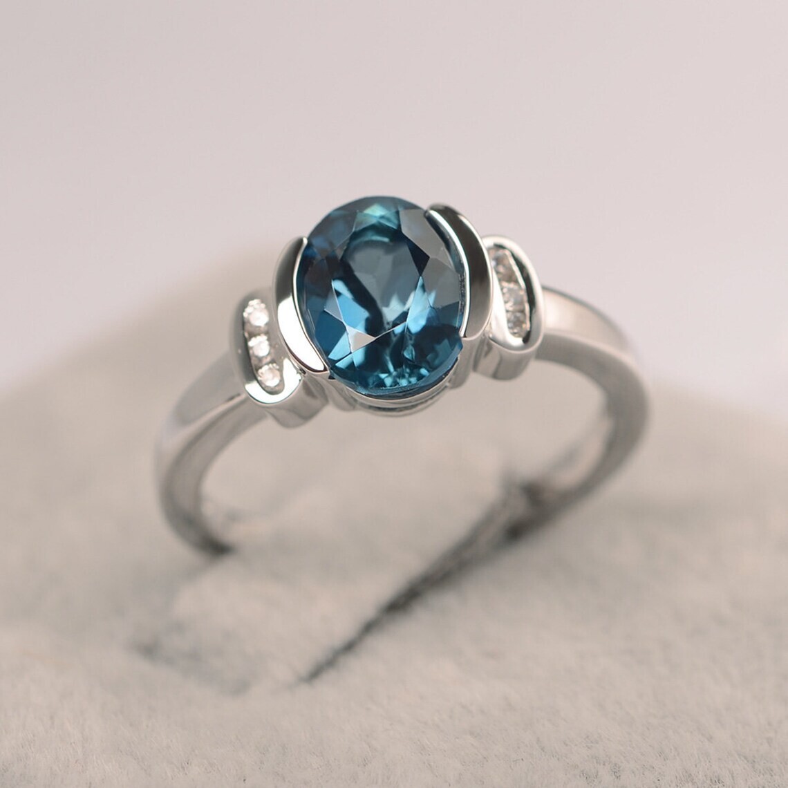 как выглядит Natural London Blue Topaz Oval Cut Ring 925 Sterling Silver Topaz Gemstone Ring фото