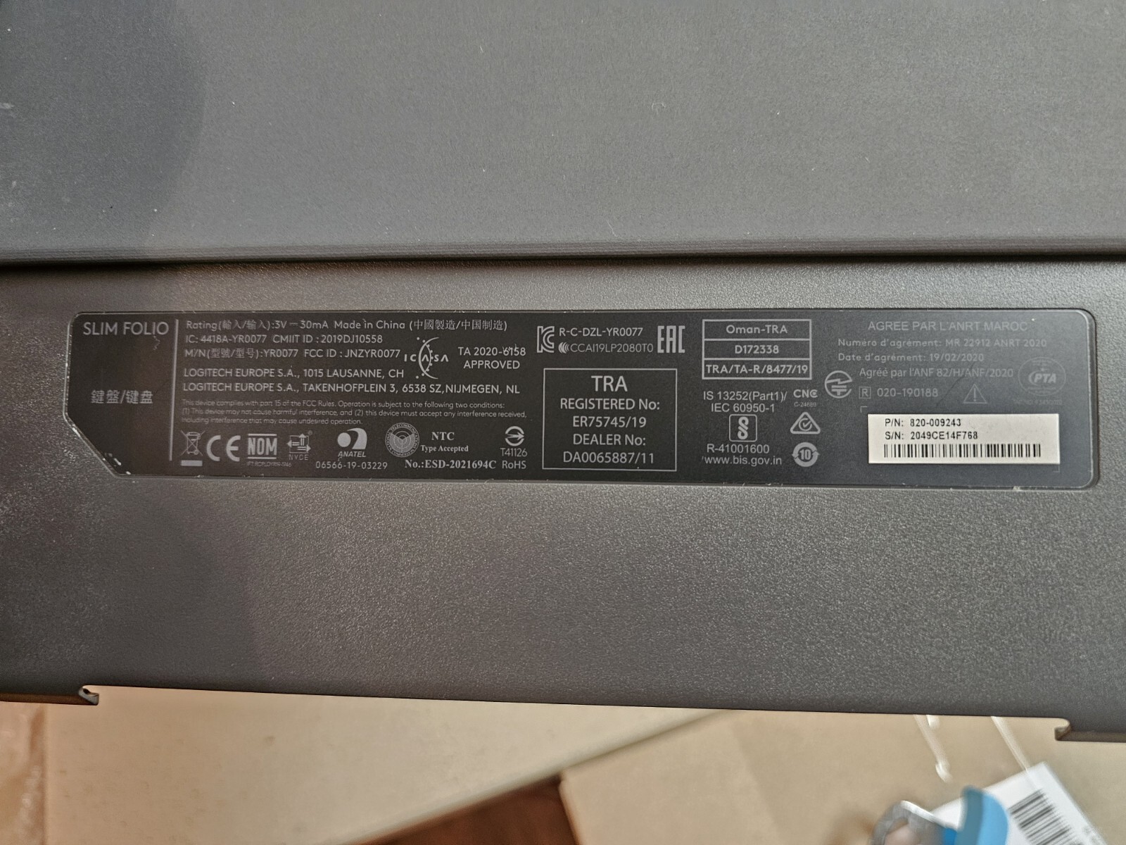 Модель: Logitech Slim Folio