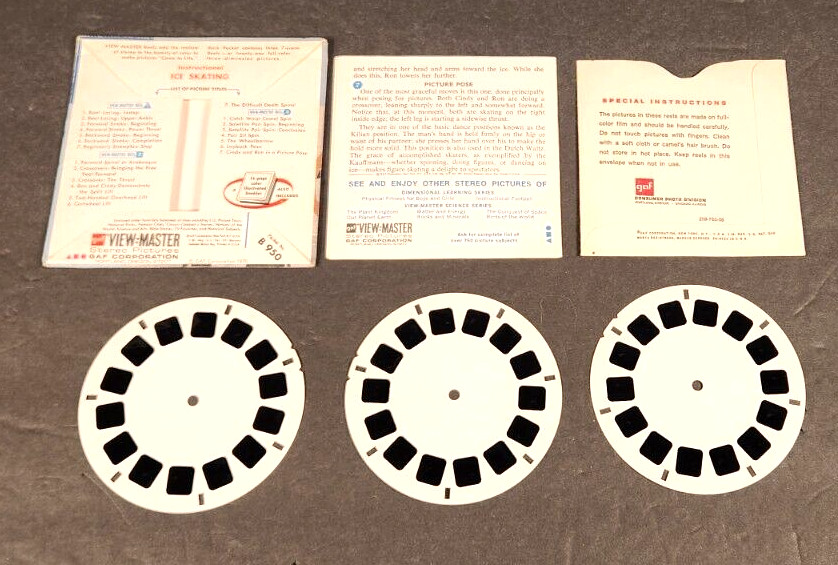 VINTAGE 1970 VIEW-MASTER 3 REELS PACKET B 950 INSTRUCTIONAL ICE SKATING KAUFFMAN