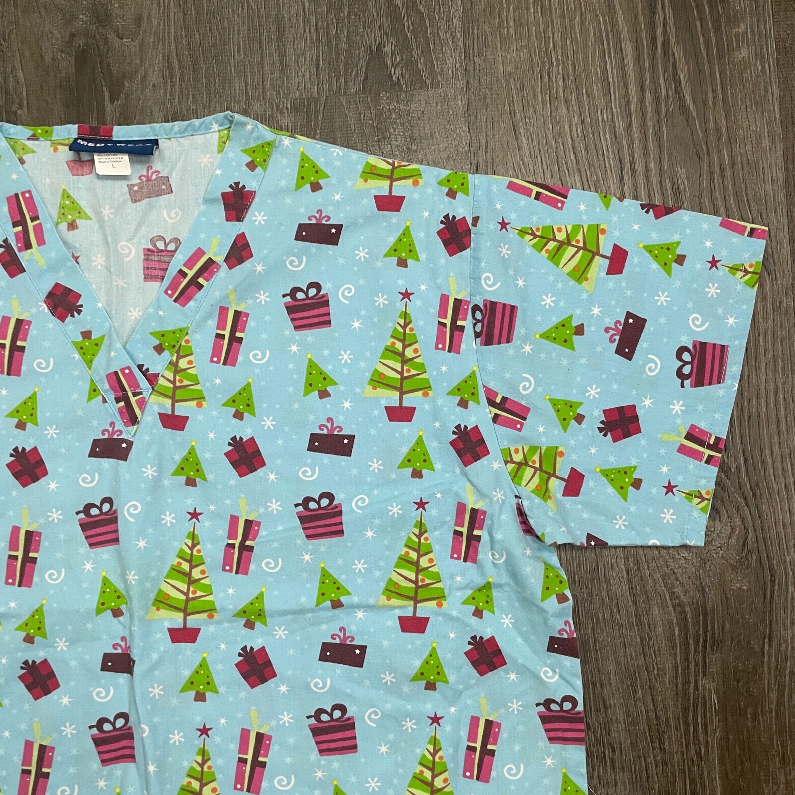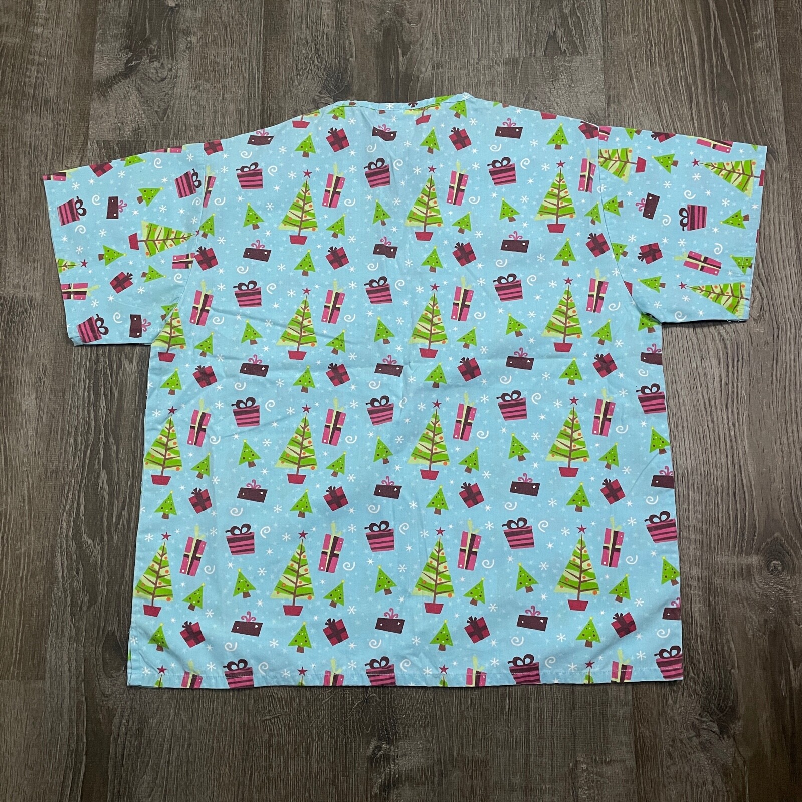 Med Wear Womans Scrub Top Nurse Holiday Christmas Multicolor S/S Size :