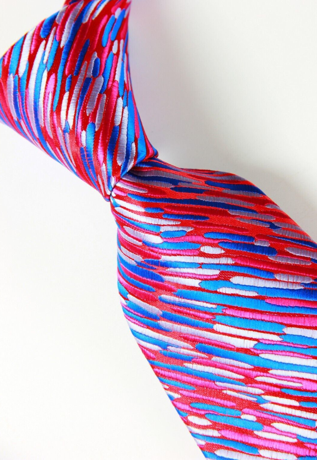 New Classic Striped Red Blue JACQUARD WOVEN Silk Men's Necktie Tie