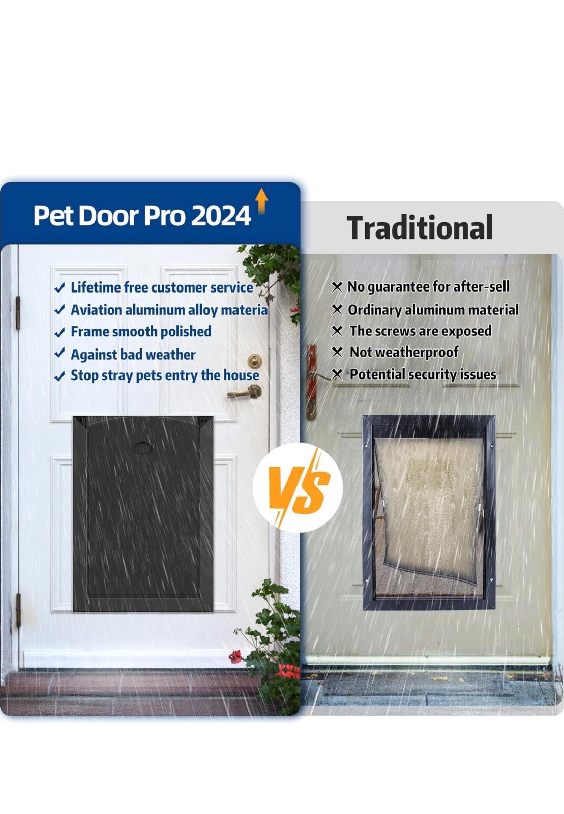 Weatherproof Dog Door with Sliding Lock Panel, Tunnel Adjustable, Magnetic Flap