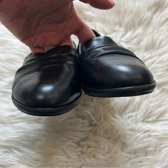 как выглядит Clarks NEW Black Leather Jenette Ruby Ruched Vamp Slip On Comfort Shoes 8M фото