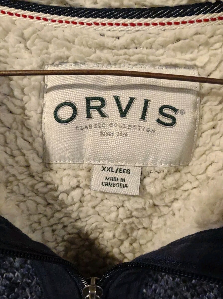 Orvis Mens Quarter Zip Sherpa Lined Pullover Sweater Blue XXL