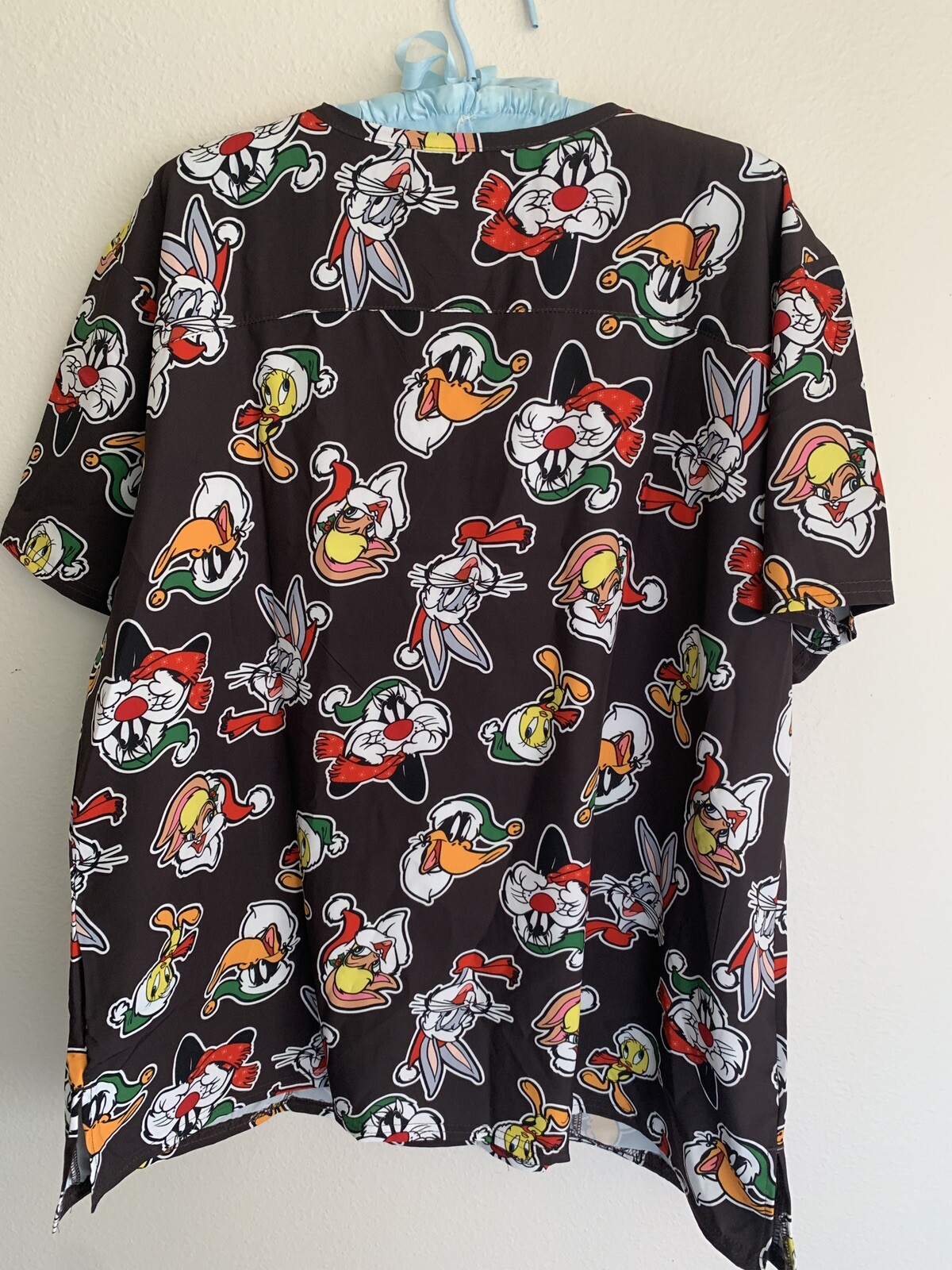 NWT XXL Looney Tunes Christmas Brown Scrub Top Shirt Holiday Cartoon Tweety Bugs