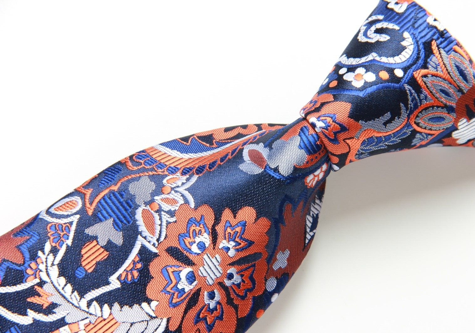 как выглядит New Classic Floral Blue Orange Silver JACQUARD WOVEN 100 Silk Men