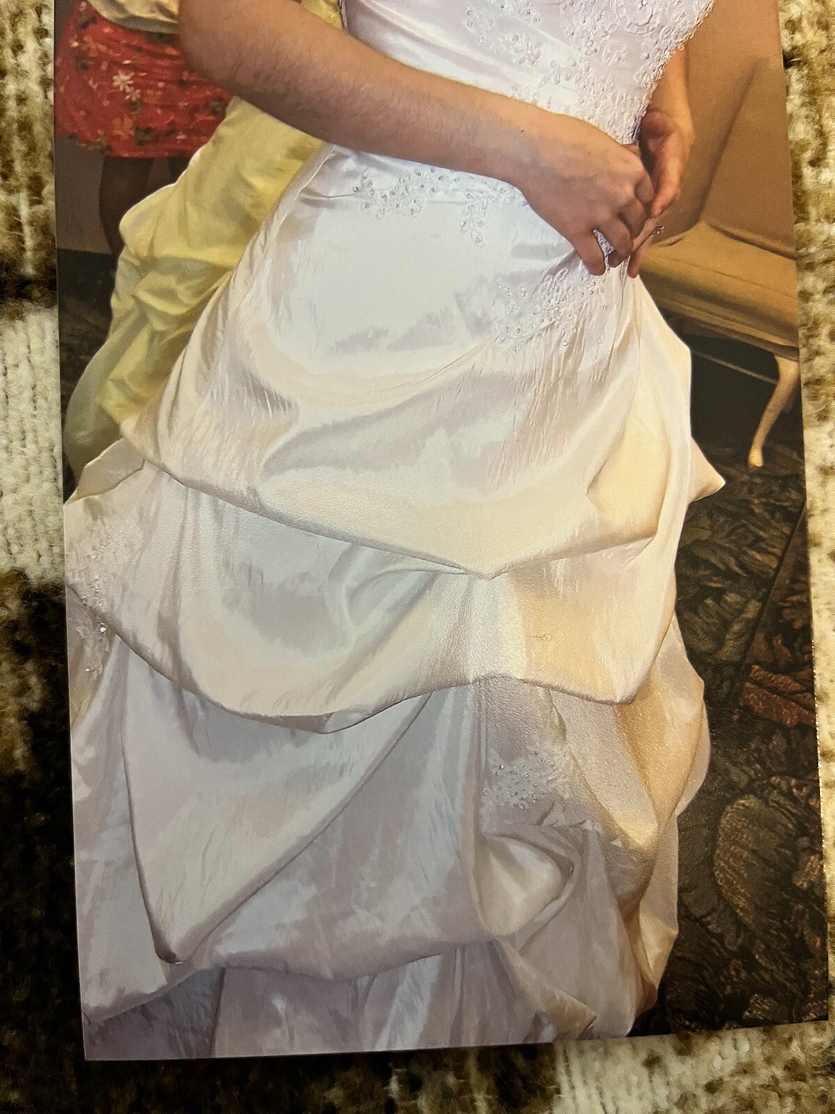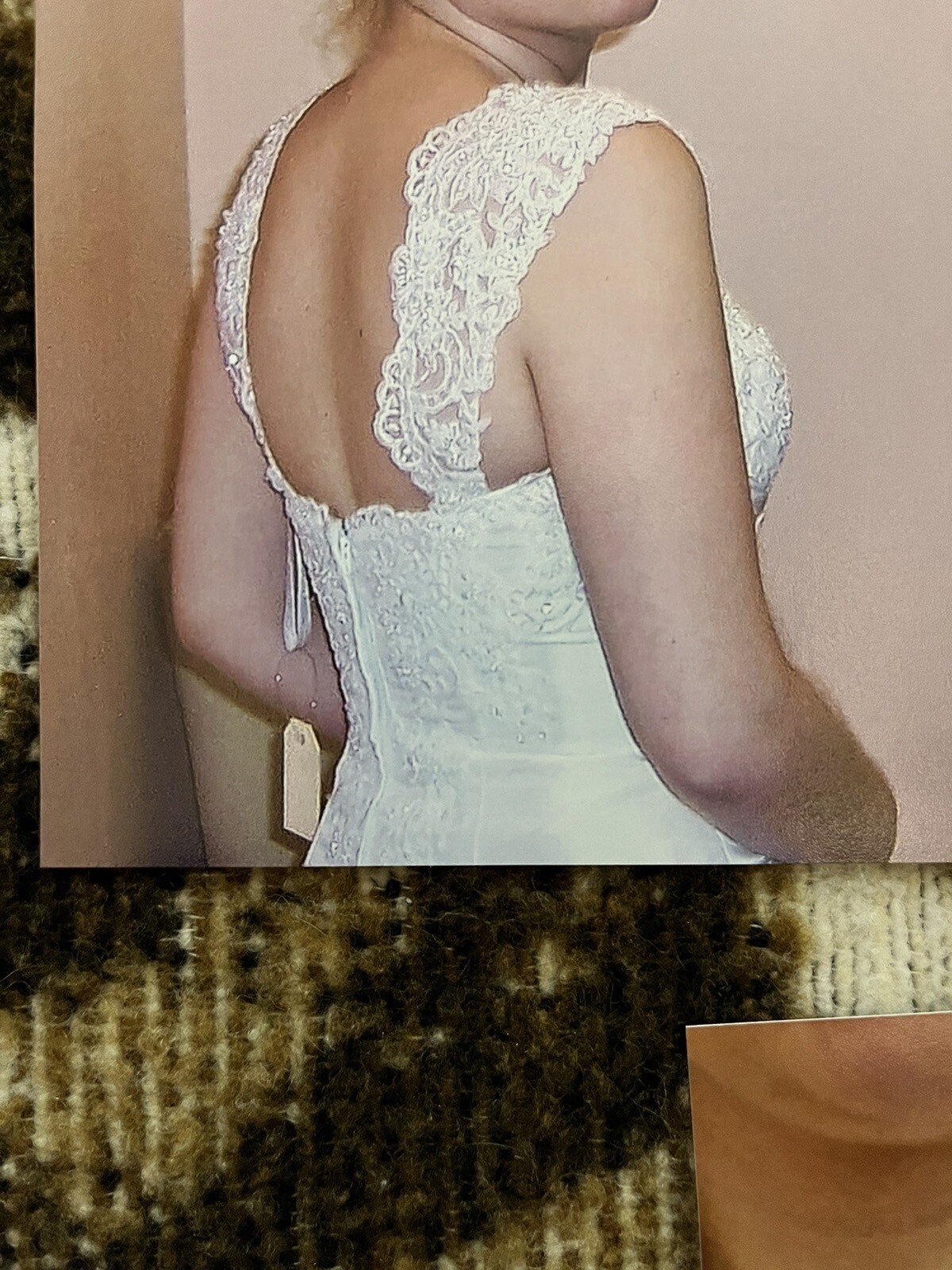 как выглядит Lace Cap Sleeve Sweetheart Neckline Beaded Wedding Gown, Cleaned And Preserved фото