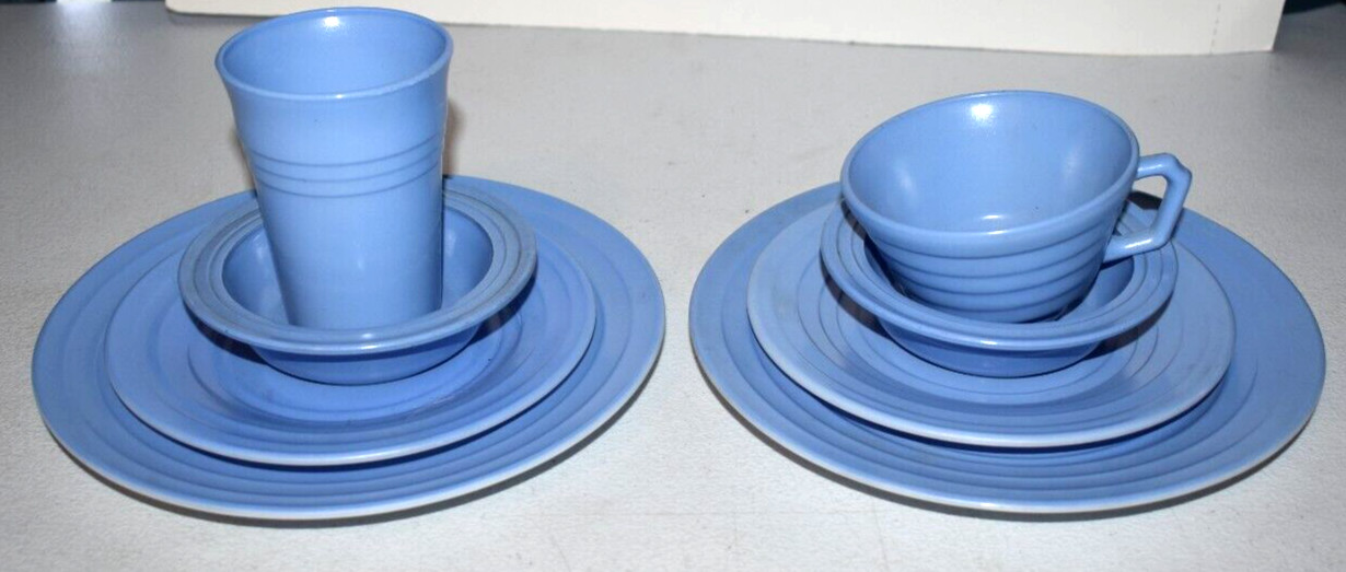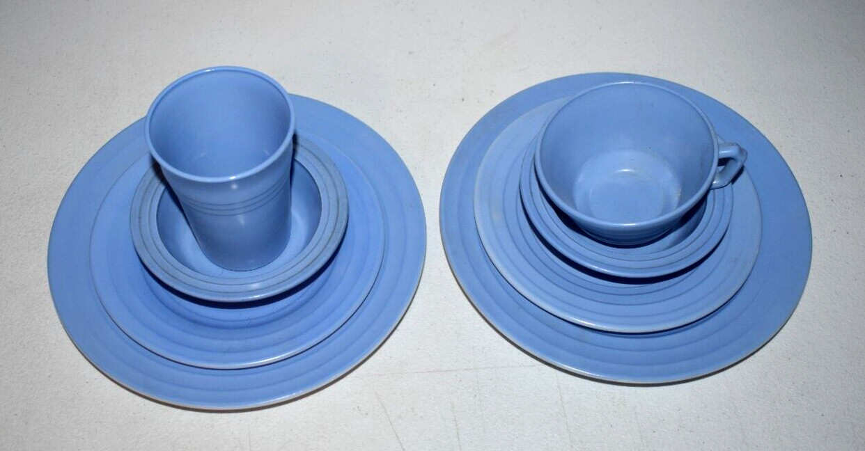 как выглядит Vintage Hazel Atlas Childrens Moderntone Dish Set Milk Glass Nine Piece BLUE фото