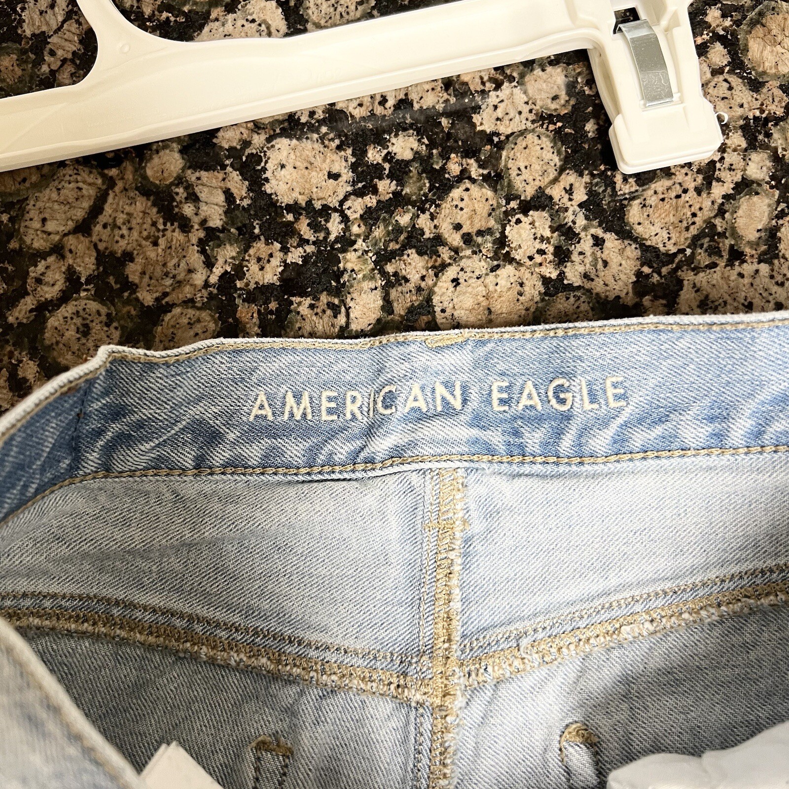 American Eagle Mom Straight Jean Light Wash Blue Denim Size 4R Distressed