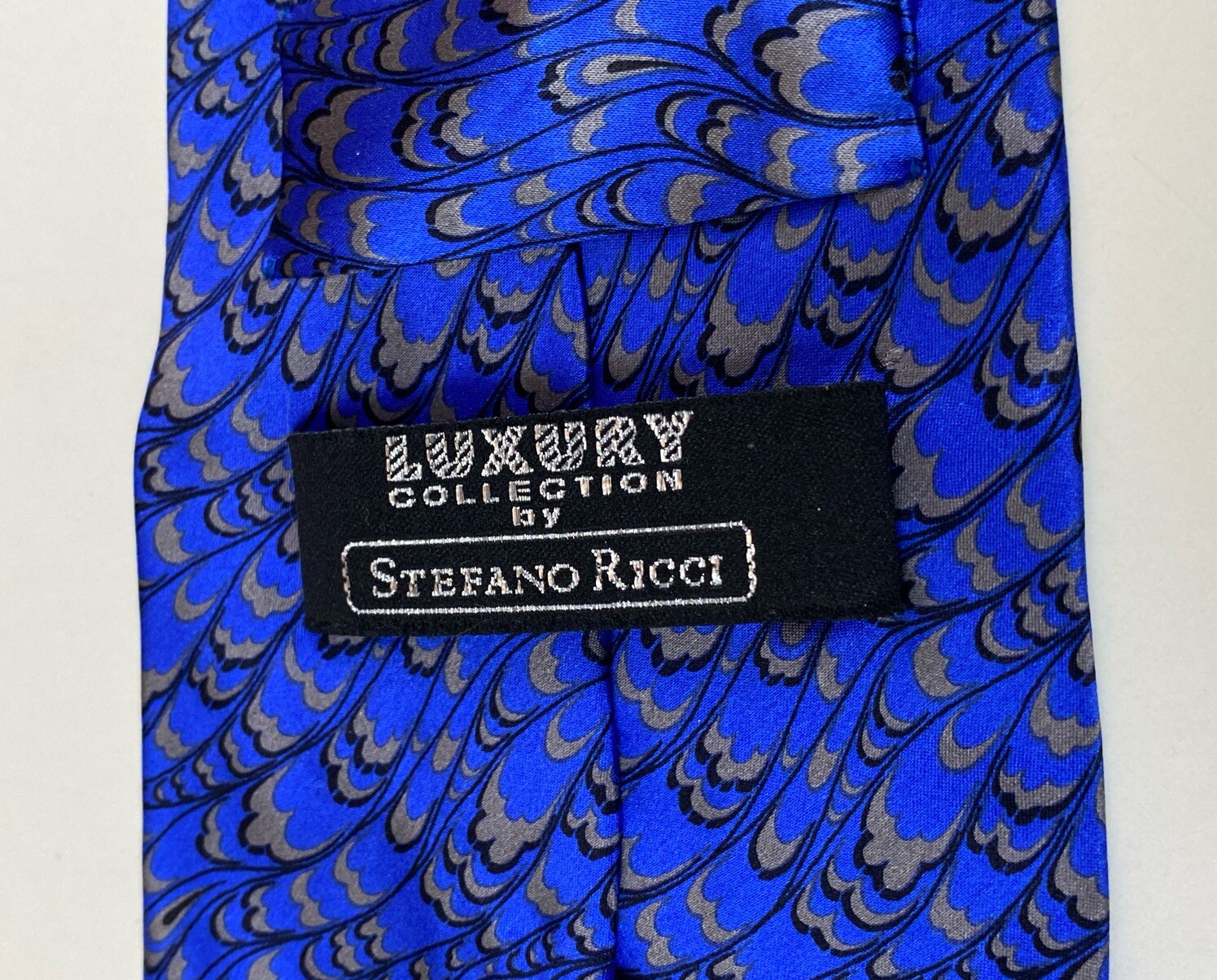 как выглядит Stefano Ricci Mens Luxury Collection Silk Neck Tie Blue Geometric 59L 4W фото