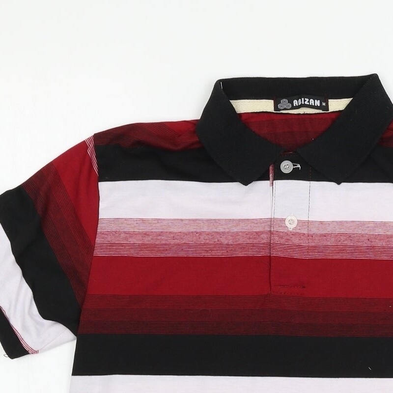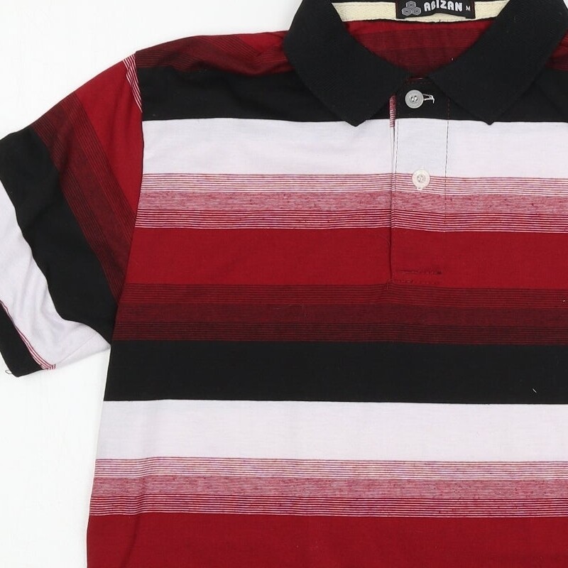 Abizan Mens Red Striped Cotton Blend Polo Size M Collared Pullover