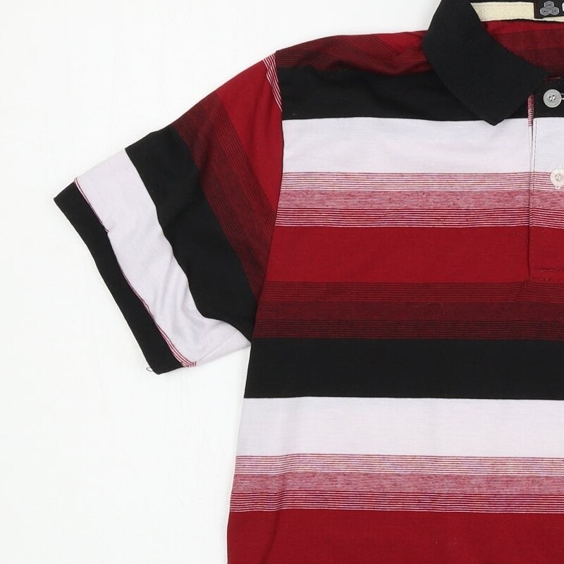 как выглядит Abizan Mens Red Striped Cotton Blend Polo Size M Collared Pullover фото