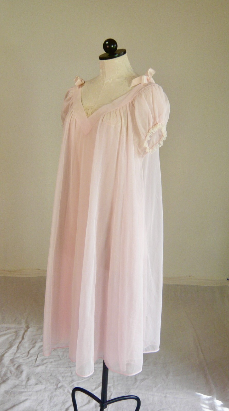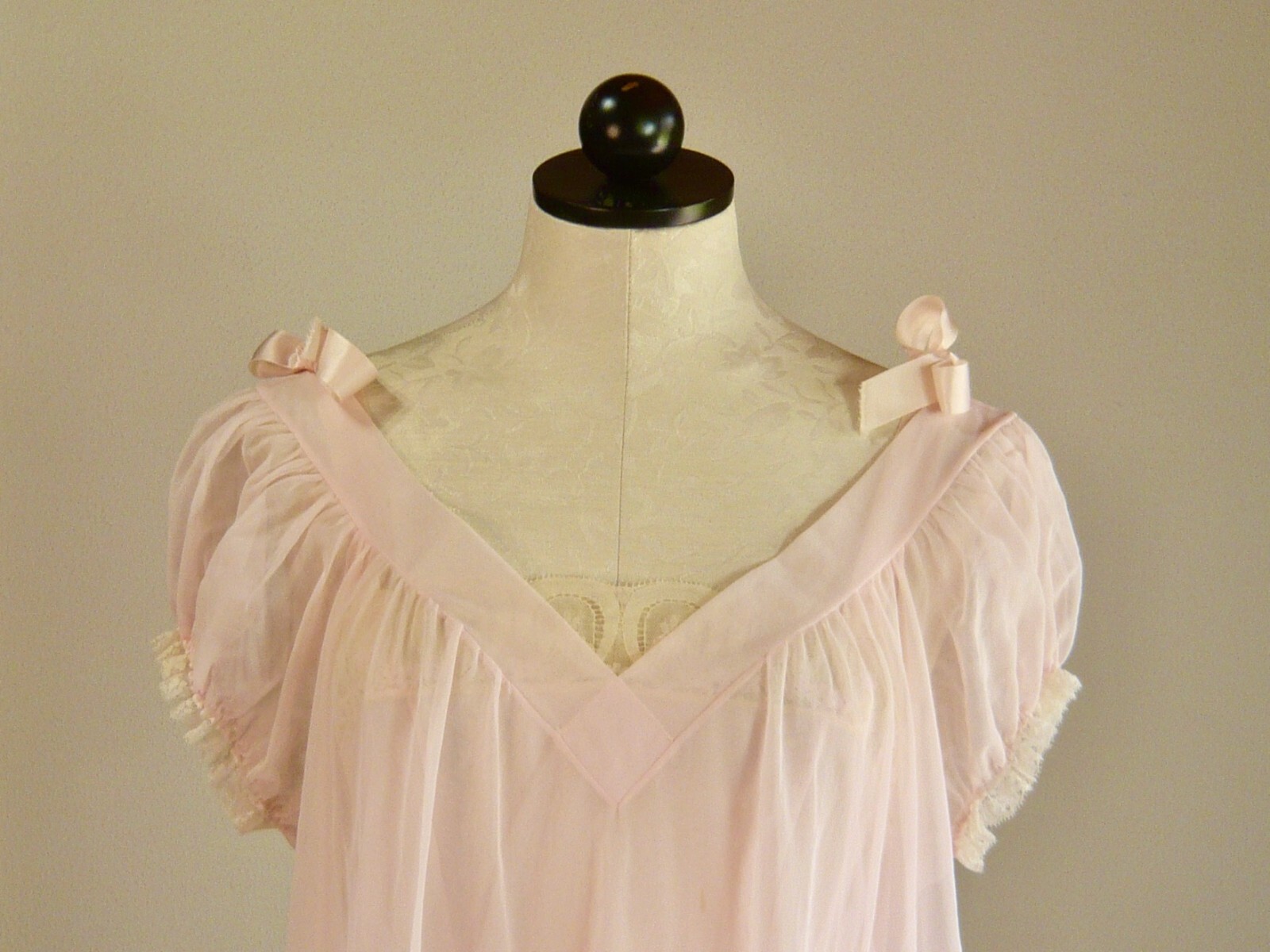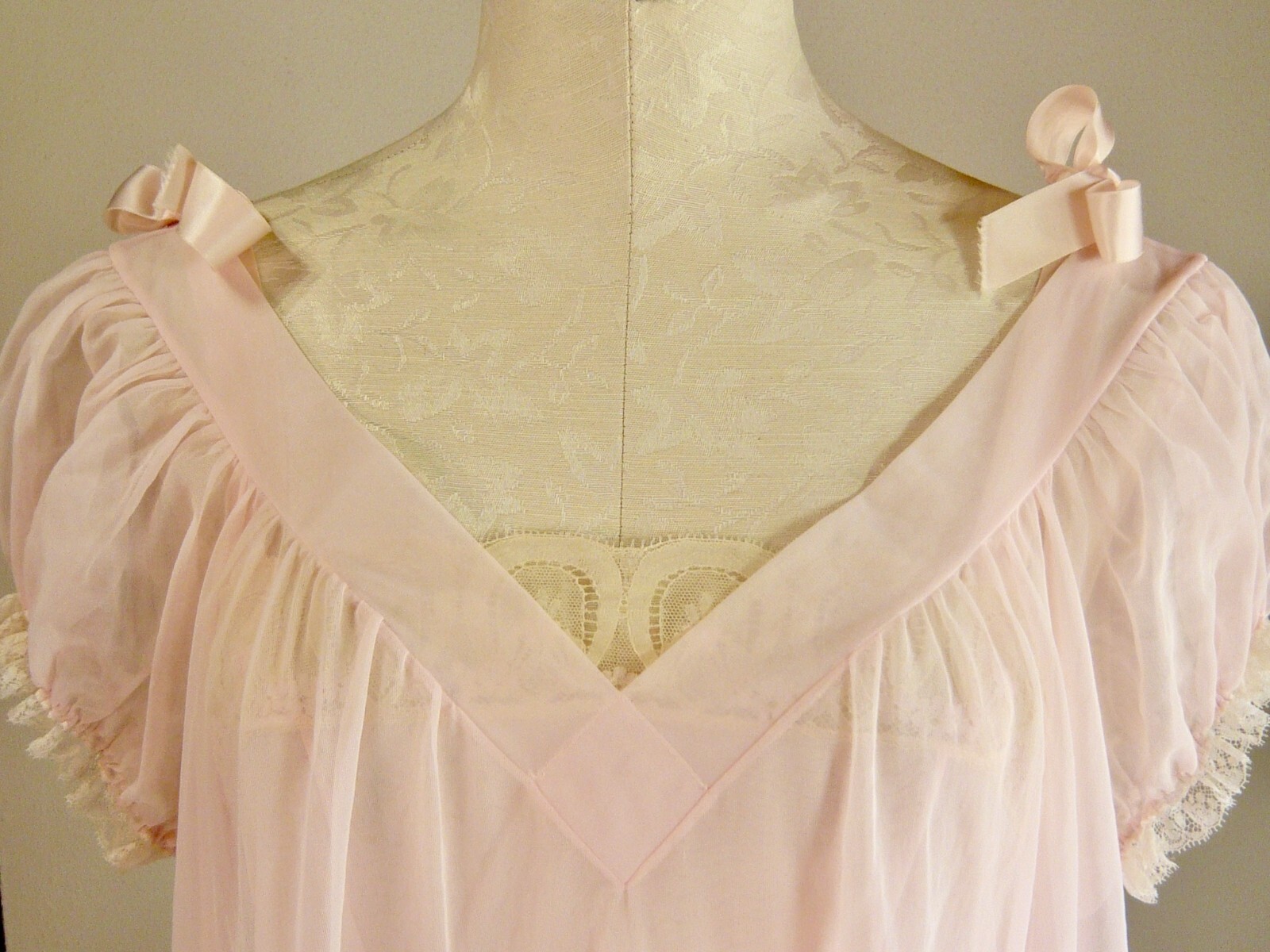 как выглядит VASSARETTE HOLLYWOOD vintage 50s graceful PINK nylon NEGLIGEE 36 фото