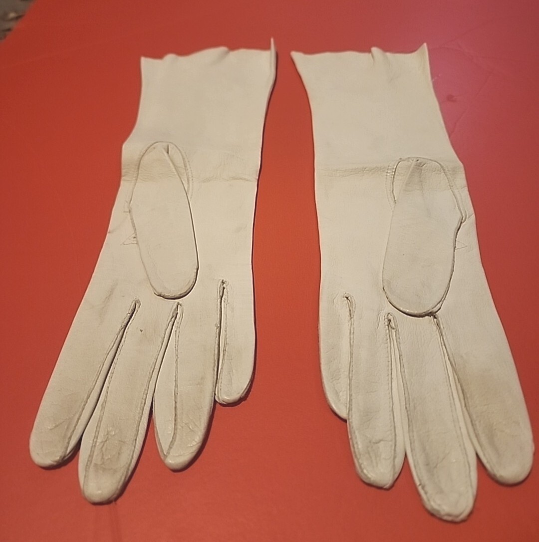 как выглядит VINTAGE 1960s OFF WHITE KIDSKIN LEATHER GLOVES SZ 6 1/2 Mid Arm Length Unlined фото