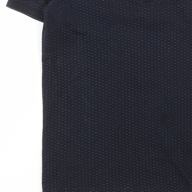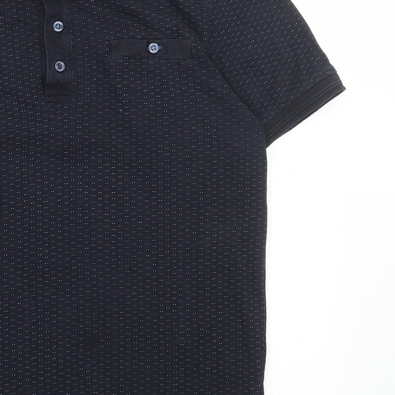 D555 Mens Black Polka Dot Cotton Blend Polo Size S Collared Button