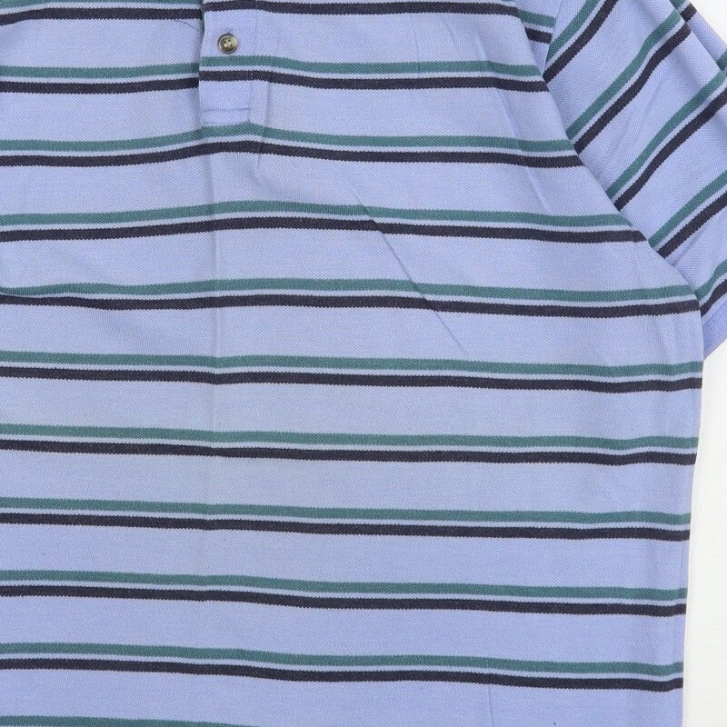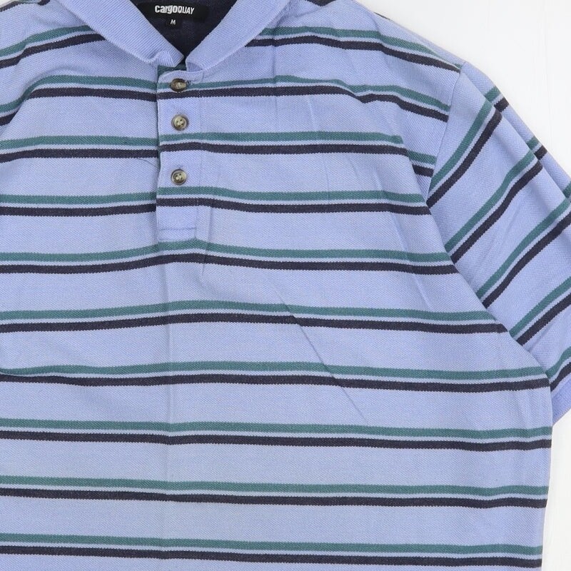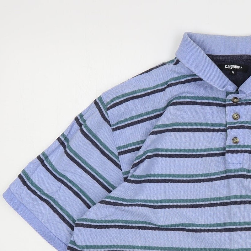 CargoQuay Mens Blue Striped Cotton Blend Polo Size M Collared