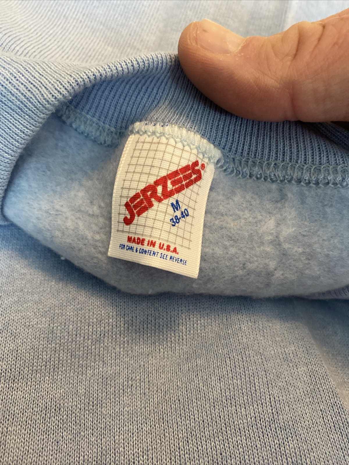 как выглядит Vintage Jerzees Blank Blue Crewneck Sweatshirt Mens Size M Made in USA W/tags фото