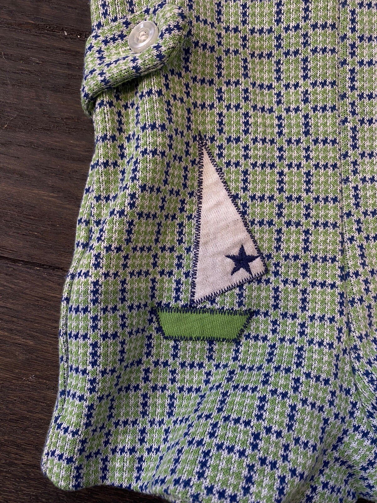 VTG HEALTH-TEX BABY ROMPER BLUE GREEN SAILBOAT 9 MOS EUC RARE