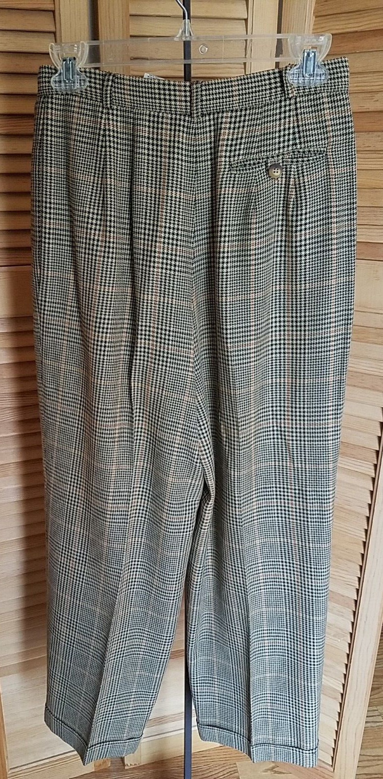 как выглядит Ann Taylor Loft Houndstooth Pleated Cuffed Pants Trousers Poly Rayon 8P фото