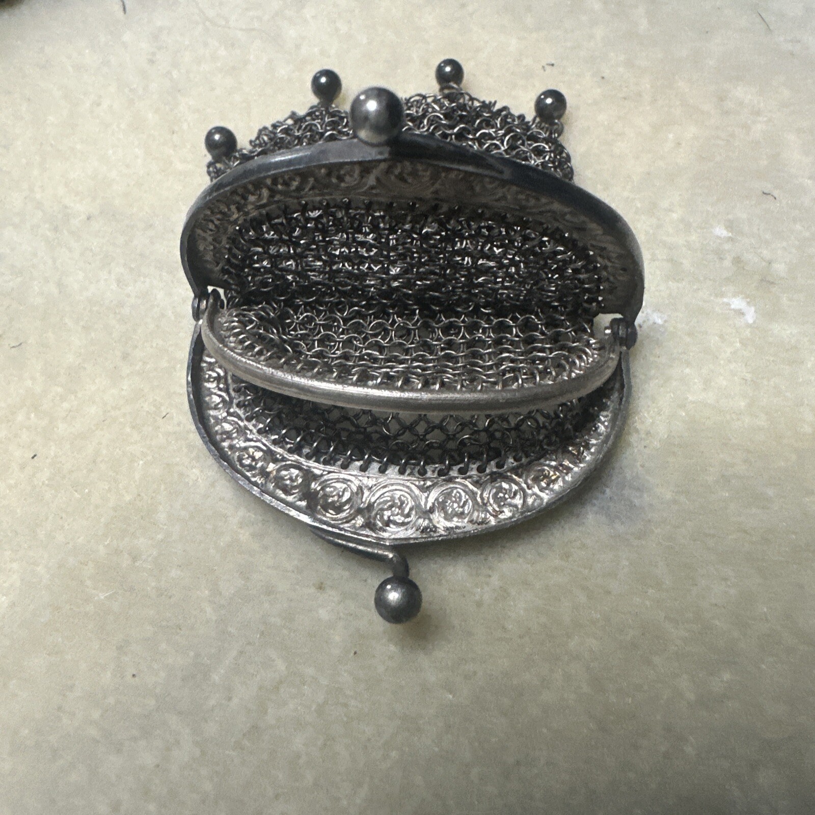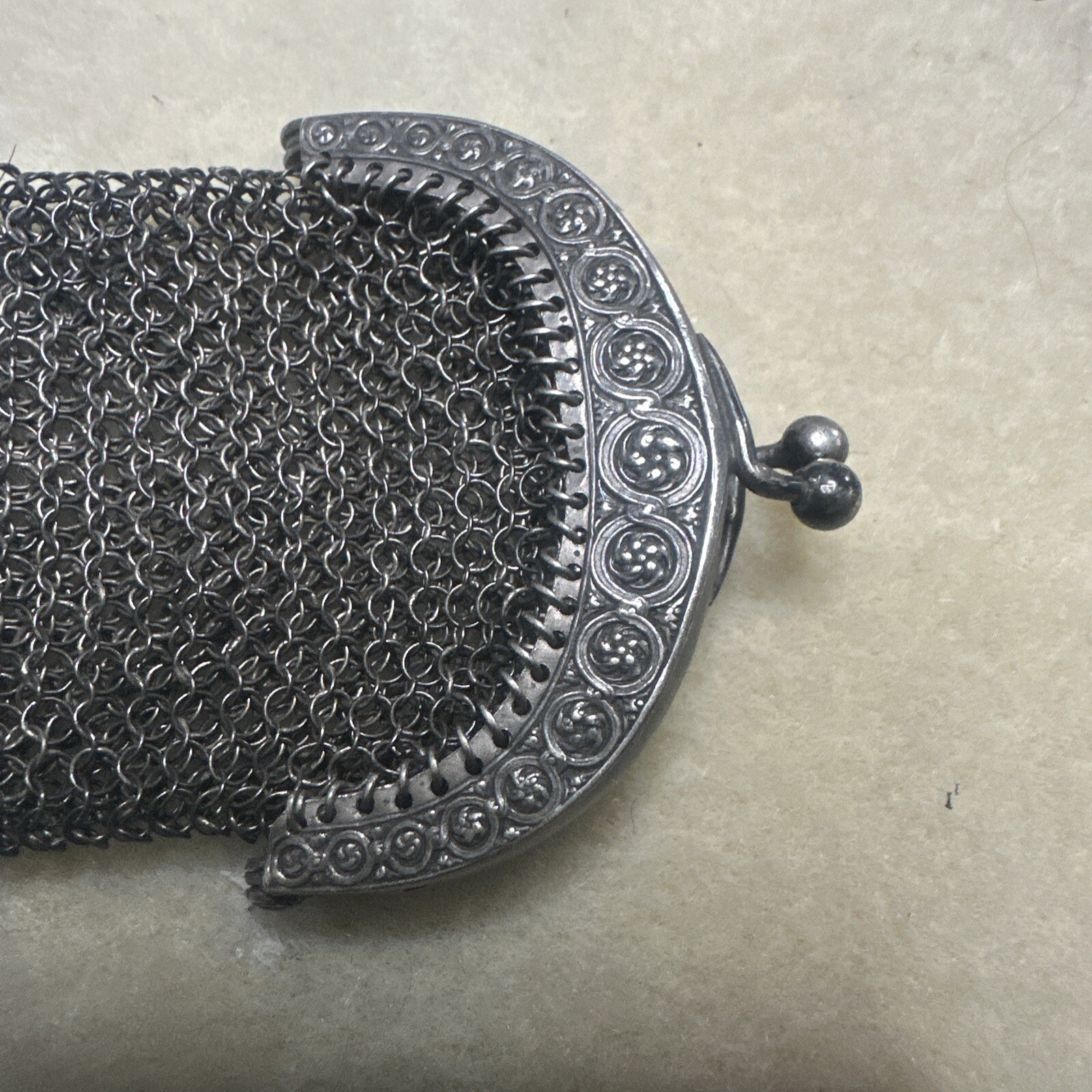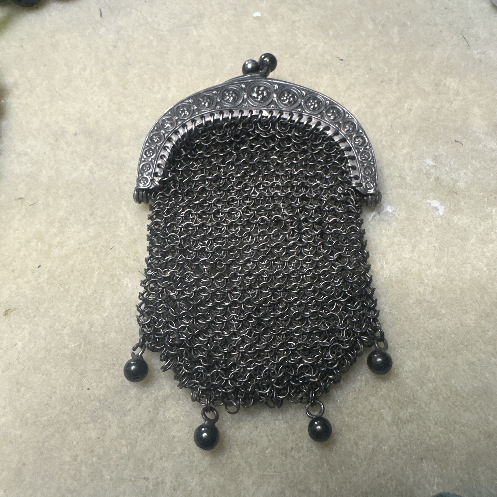 как выглядит Silver Mesh 1900 s Chatelaine Layered Purse Stamped фото