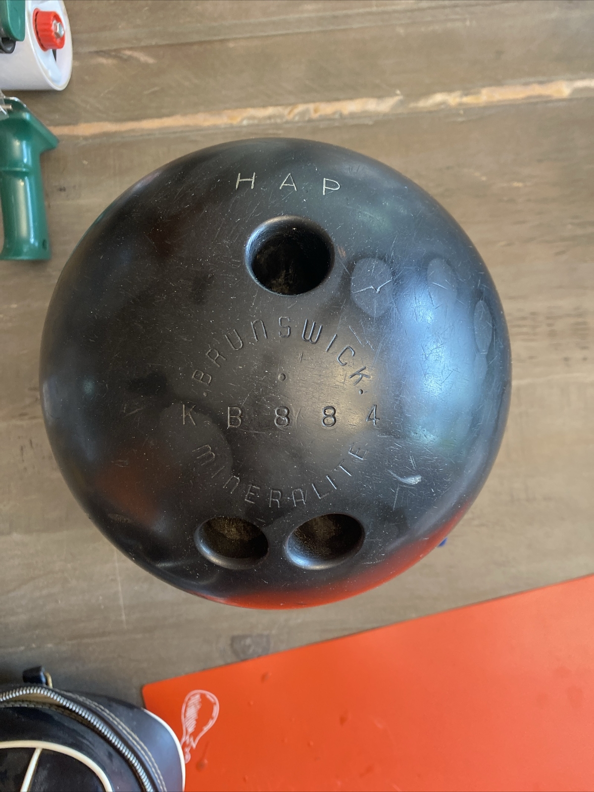 Vintage Brunswick Black 16lb Bowling Ball Mineralize KB884