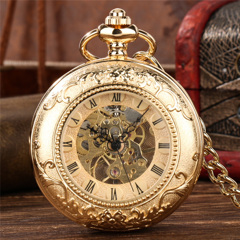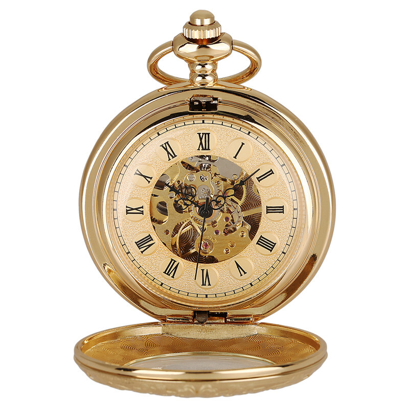 Gold Double Hunter Mechanical Pocket Watch for Men Hand Wind Watches Luxury Gift