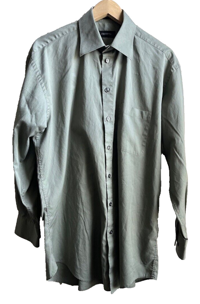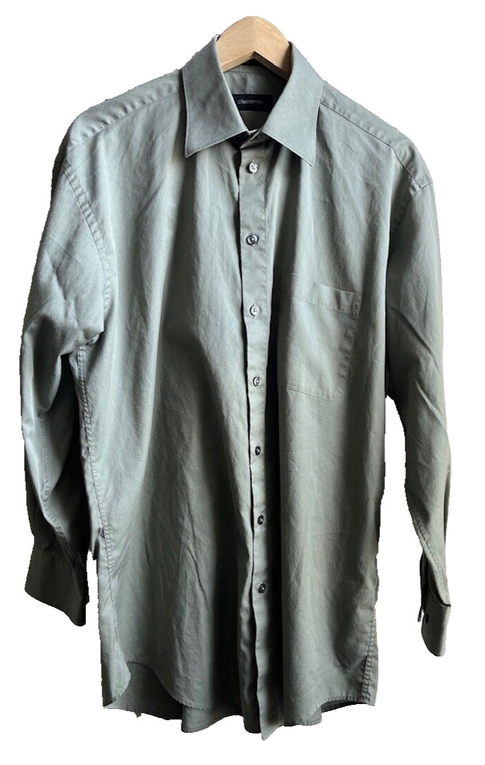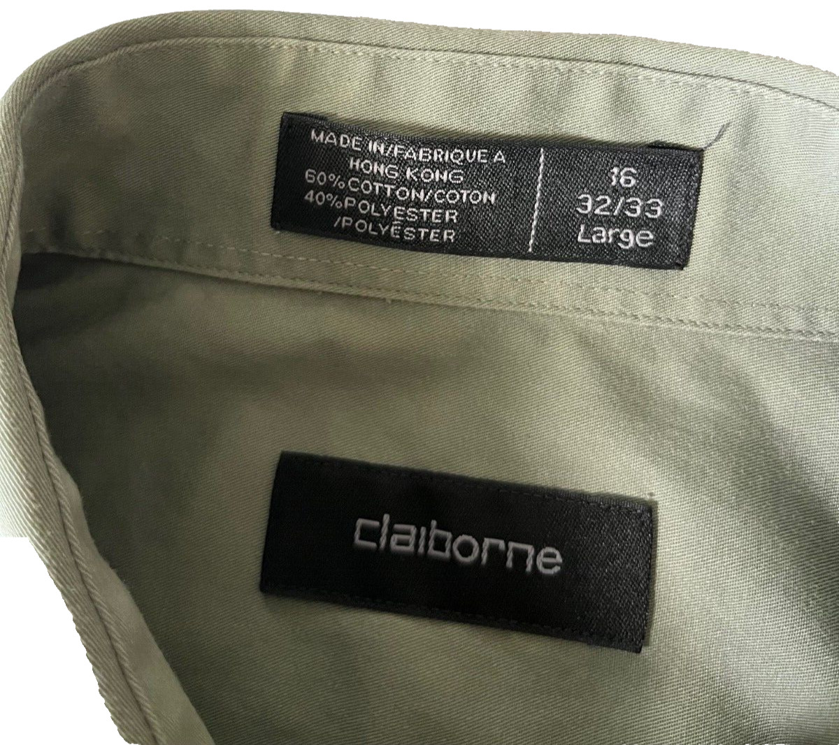Shirt Men s Claiborne 16 Green Solid Button Up Long Sleeve Pocket Size Large.