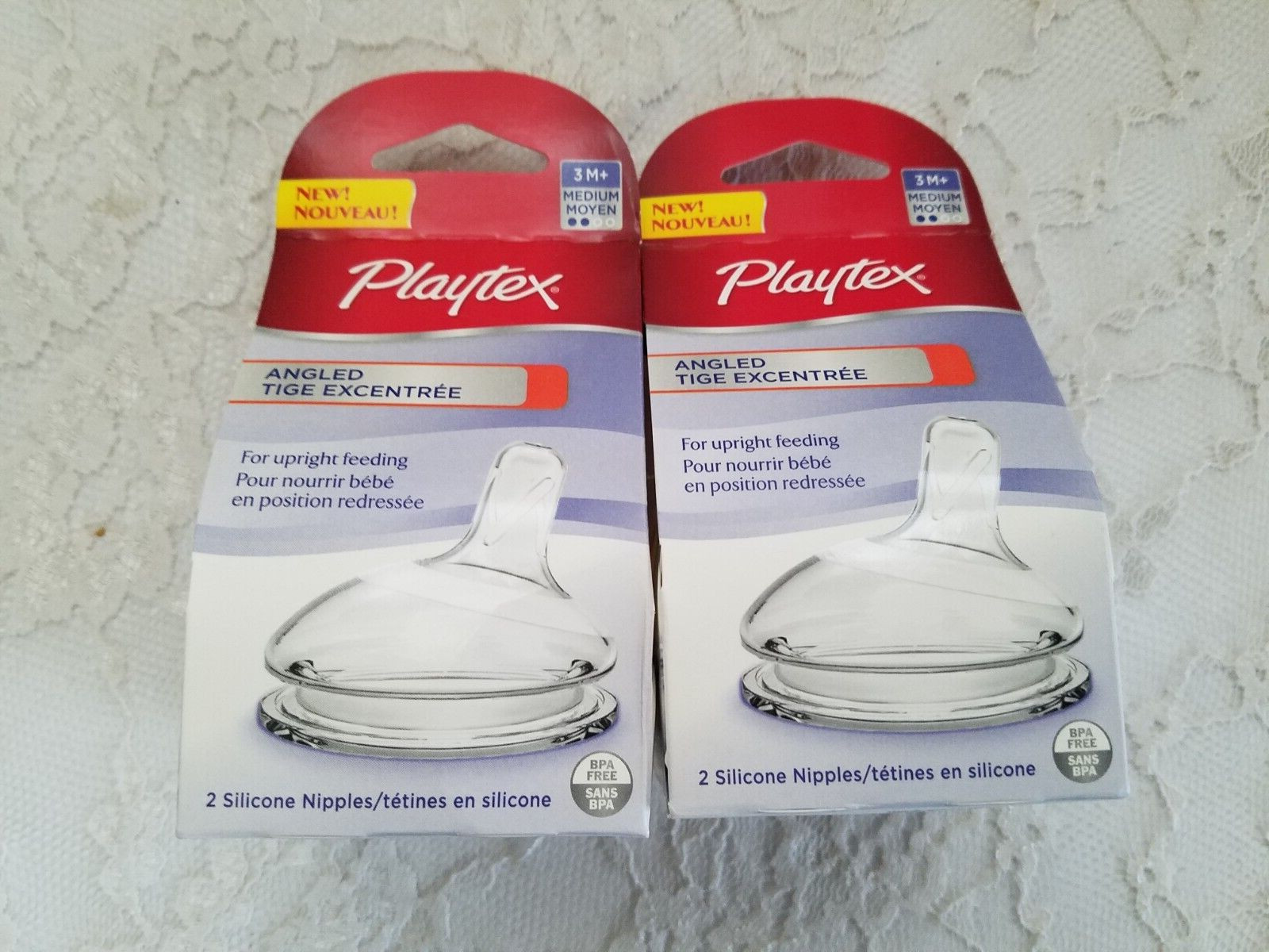 2X Playtex, Angled Nipple, Medium Flow, 2-Count/2 Pck Silicone 4 Ct. total 3m