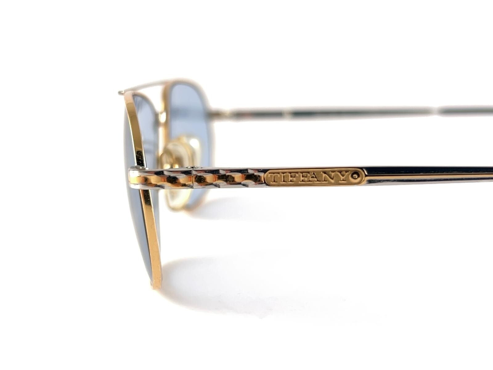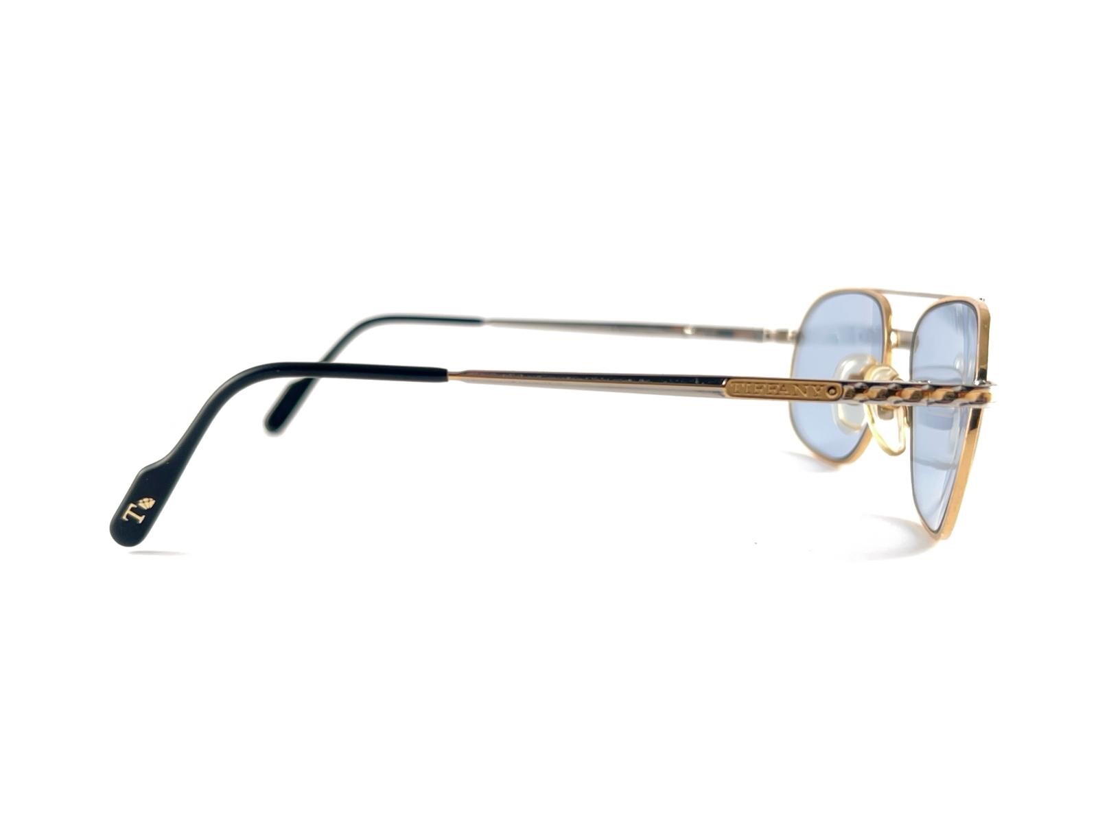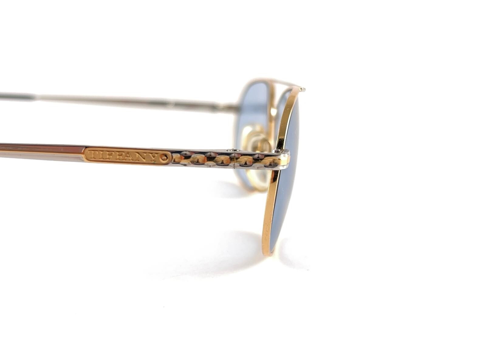 NEW VINTAGE TIFFANY T 396 OVAL GOLD PLATED BLUE LENSES 90'S SUNGLASSES ITALY