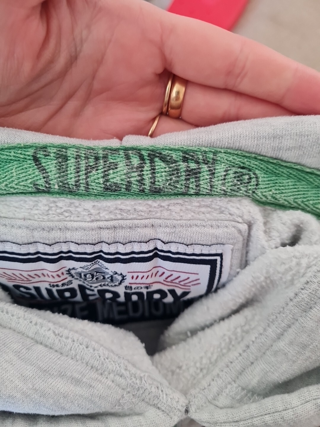 Superdry Grey Hoodie Size Medium With Green Detailing