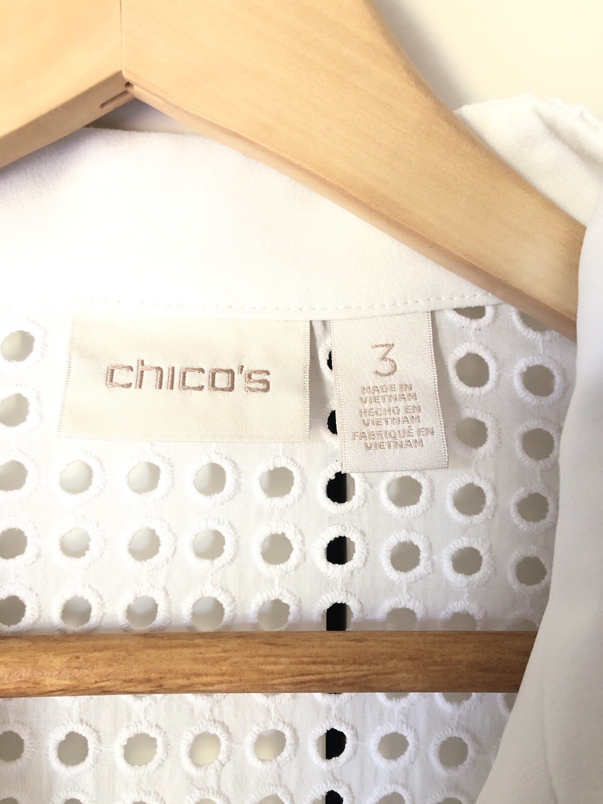 Women's Chicos White Eyelet 3/4 Sleeve Jacket Size 3