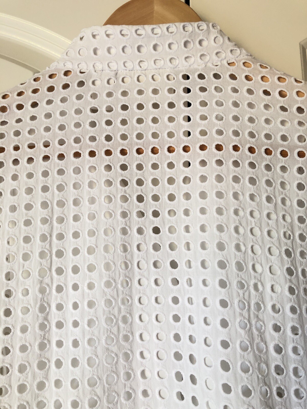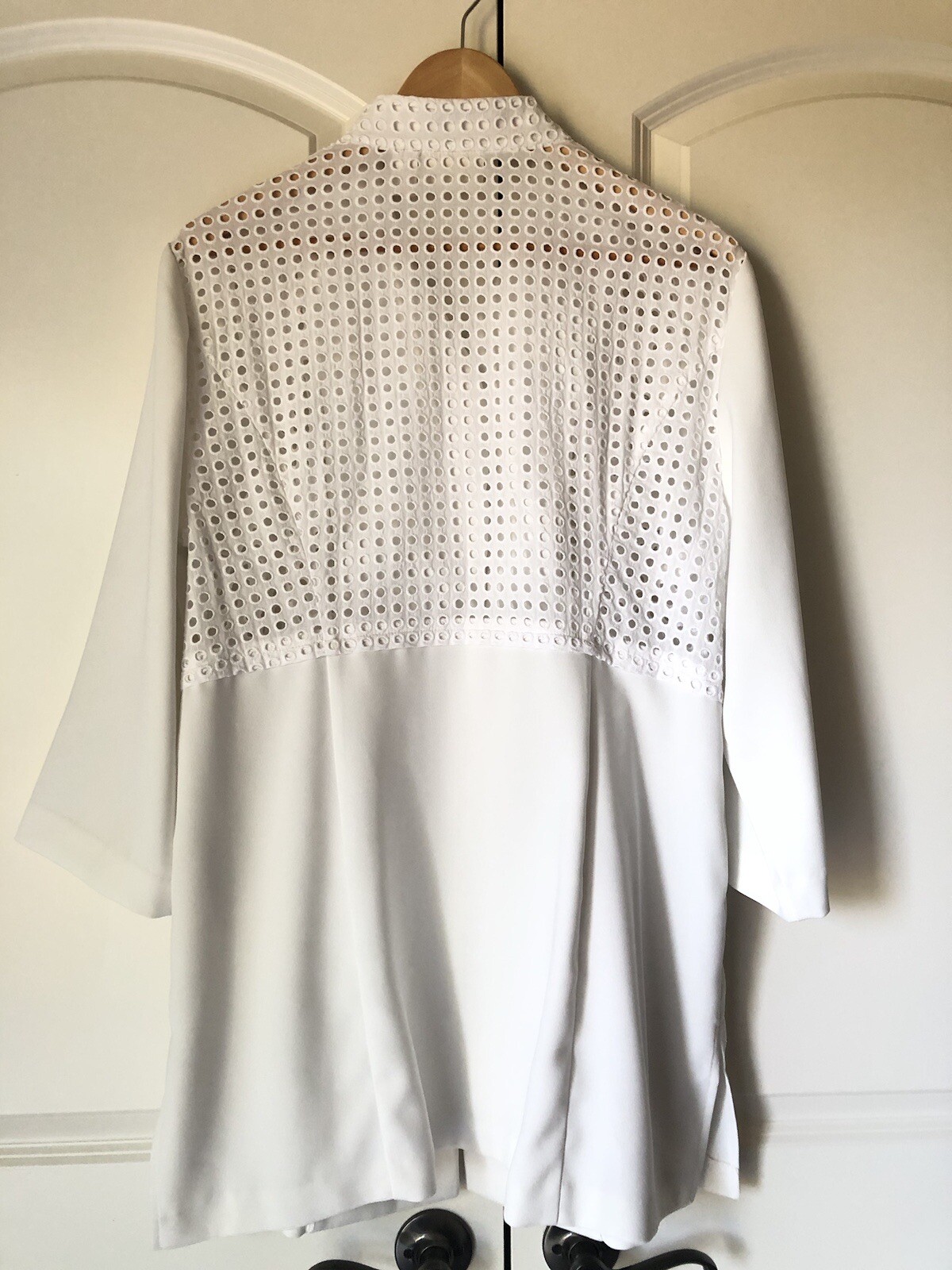 как выглядит Womens Chicos White Eyelet 3/4 Sleeve Jacket Size 3 фото