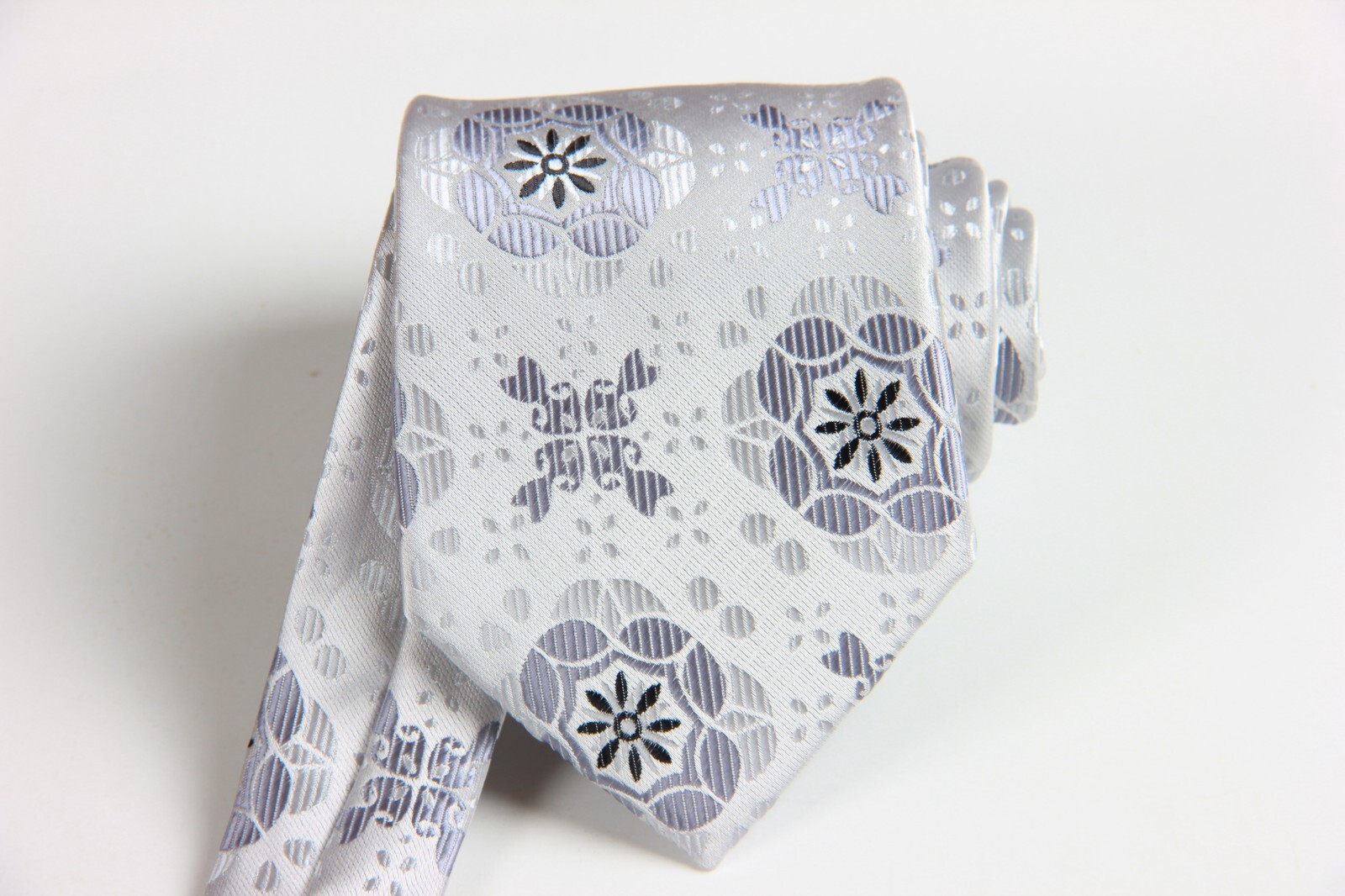 как выглядит New Classic Floral Gray Silver JACQUARD WOVEN 100 Silk Men