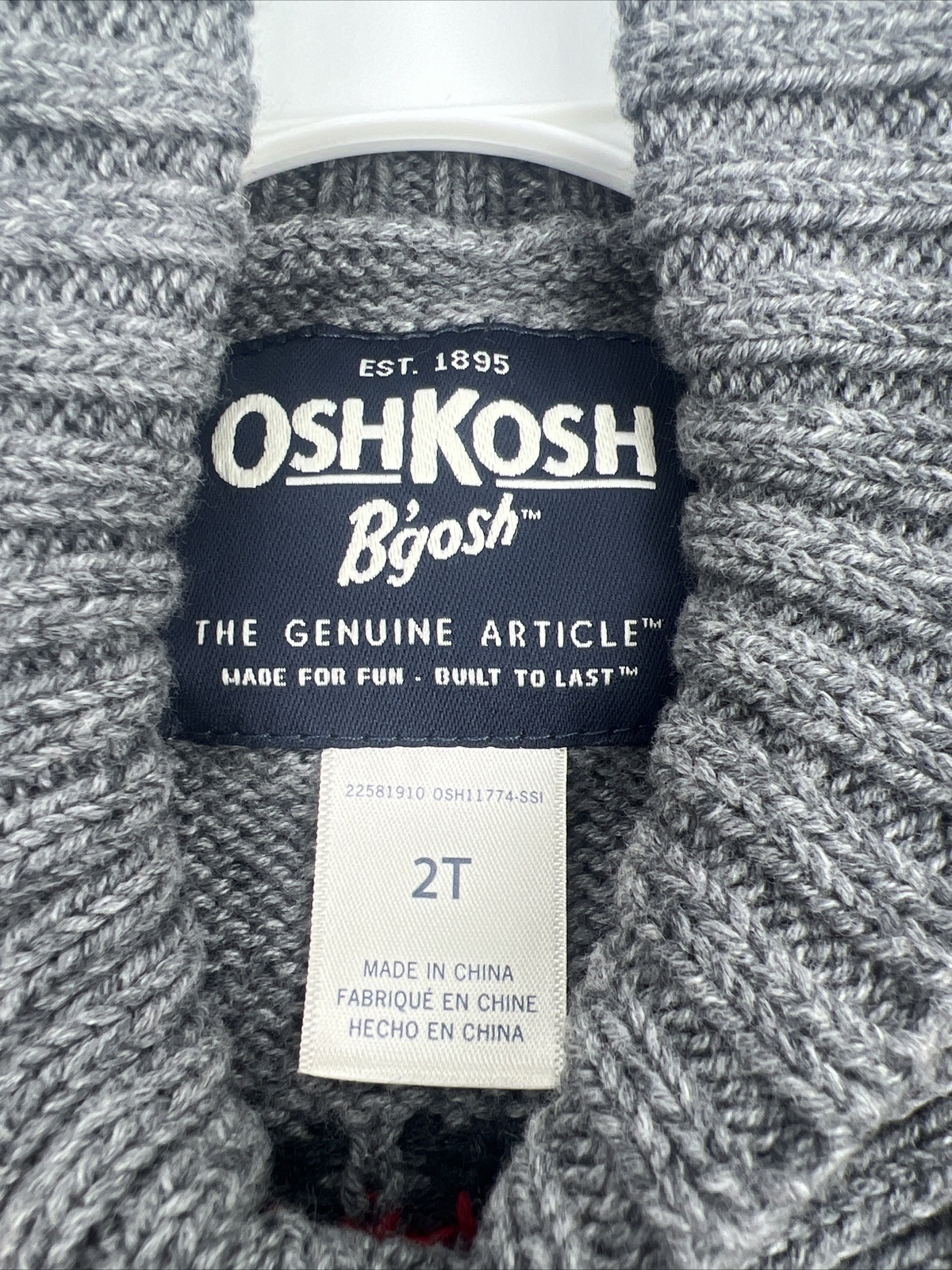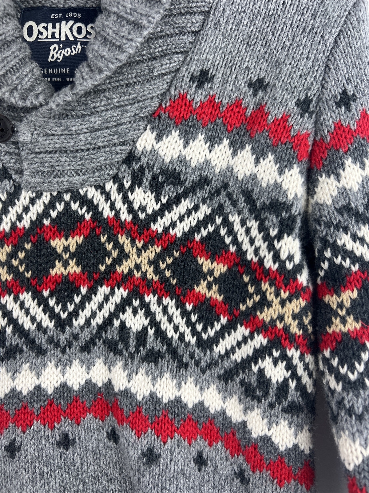 Oshkosh B gosh TODDLER Boys 2T shawl Sweater Gray Fair Isle