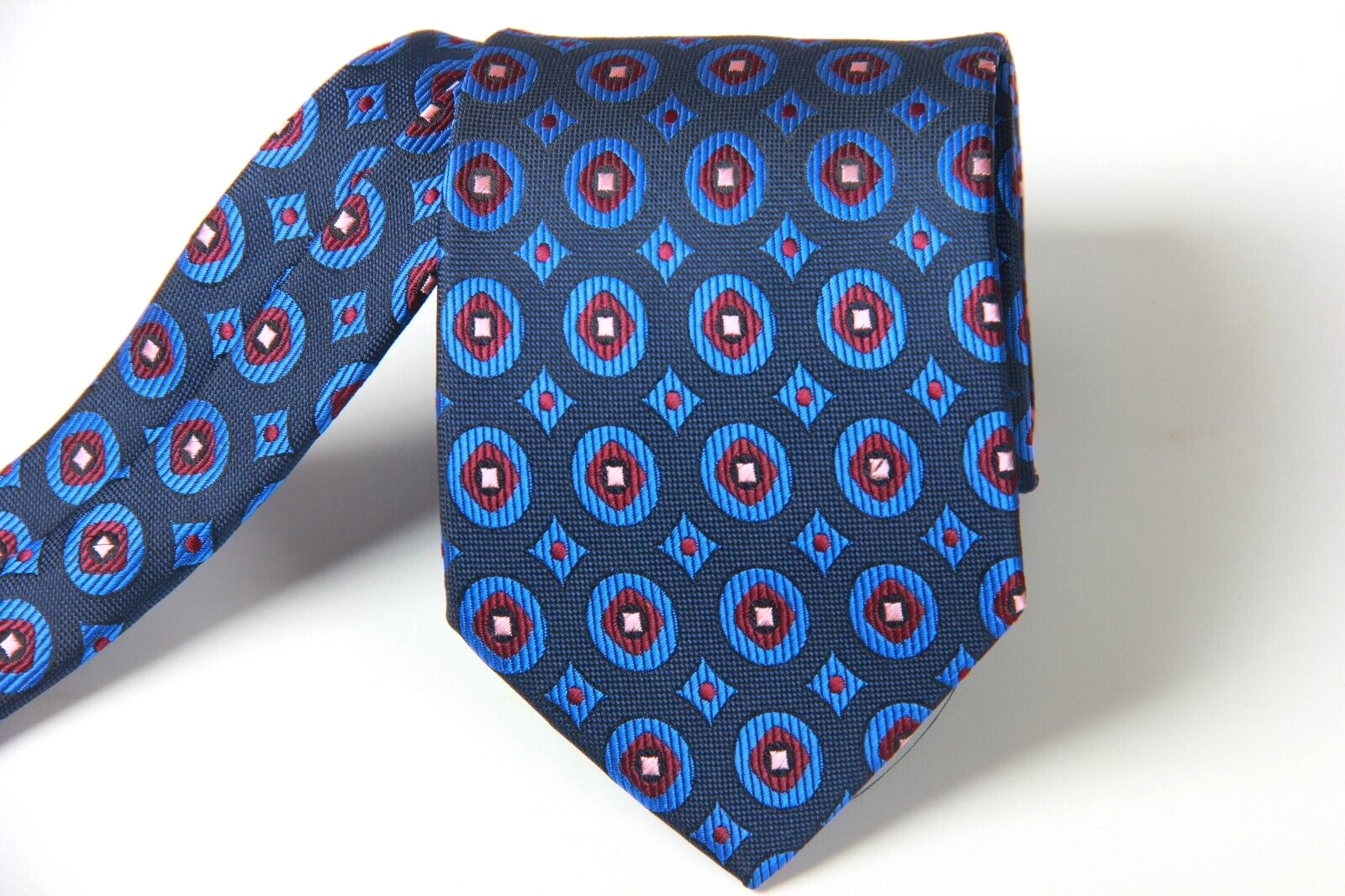 New Classic Polka Dot Blue Red JACQUARD WOVEN 100 Silk Men's Necktie Tie
