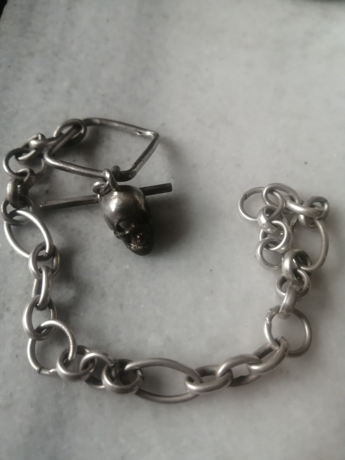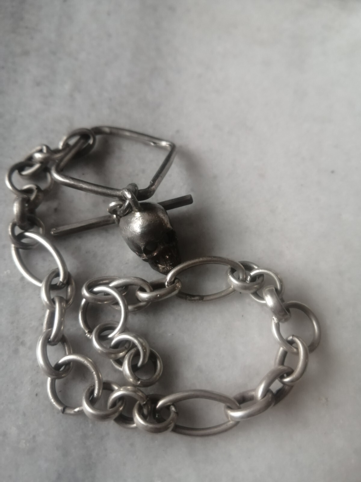 как выглядит Antique Rare 800 Silver Chain With Silver Skull Fob For Pocket Watch фото
