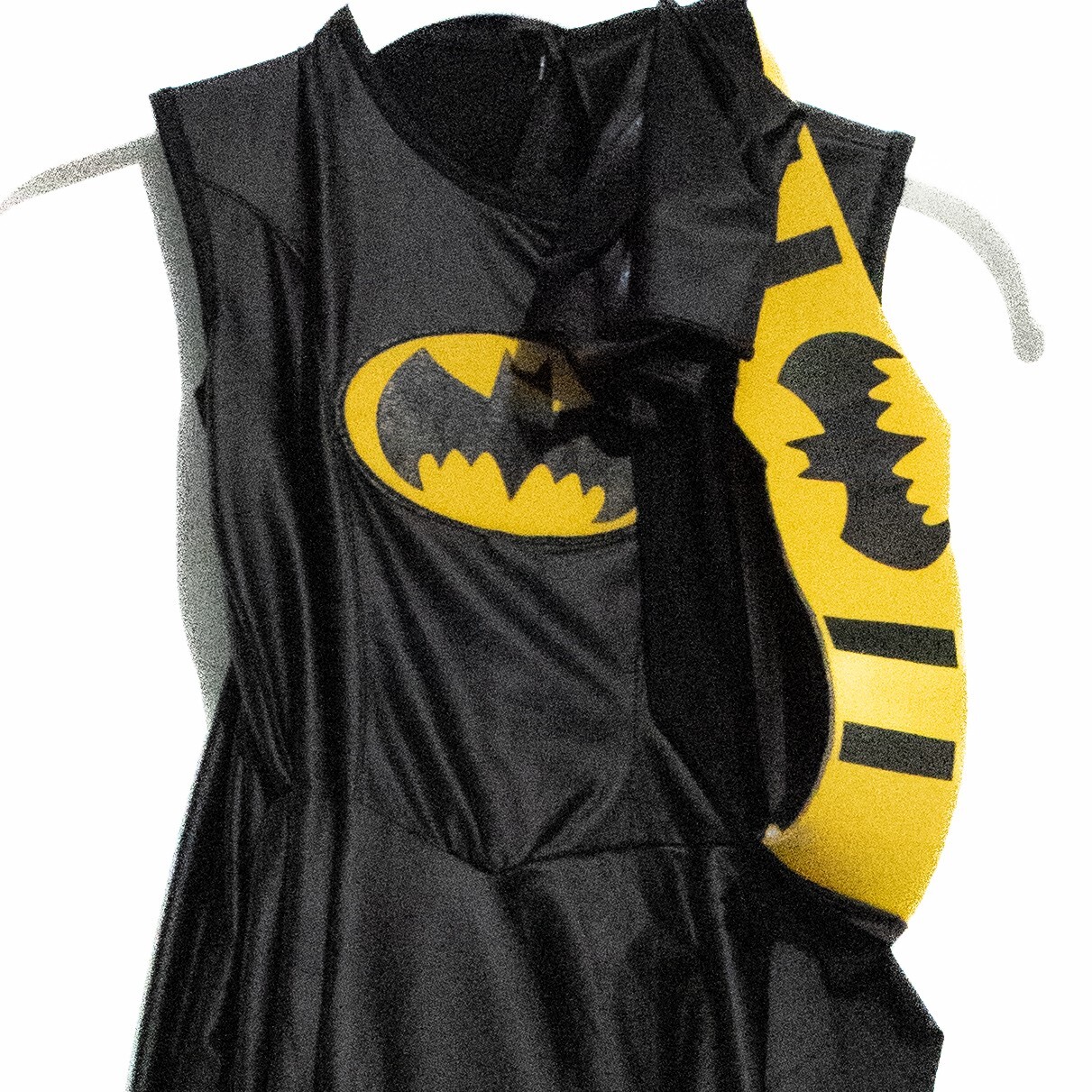 как выглядит Girls Black Yellow Batgirl Costume Dress Cape Headgear Pure Polyester Size M фото