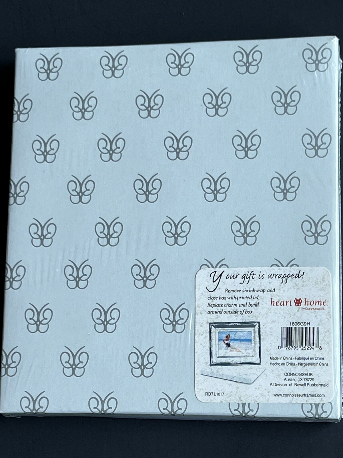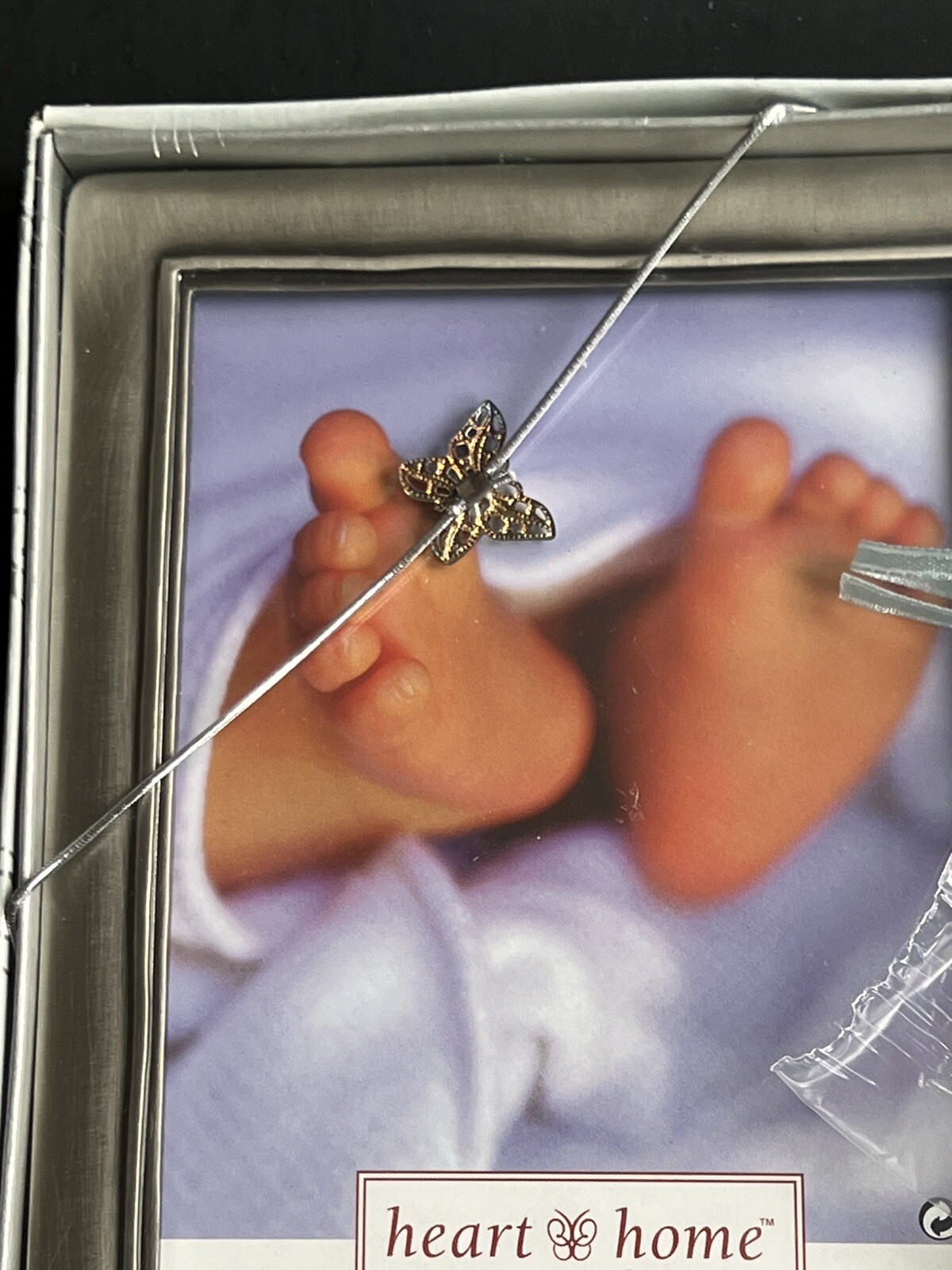 BABY PHOTO FRAME 4x6 silver Heart Home NIP with Tiny shoes Embellishment.New