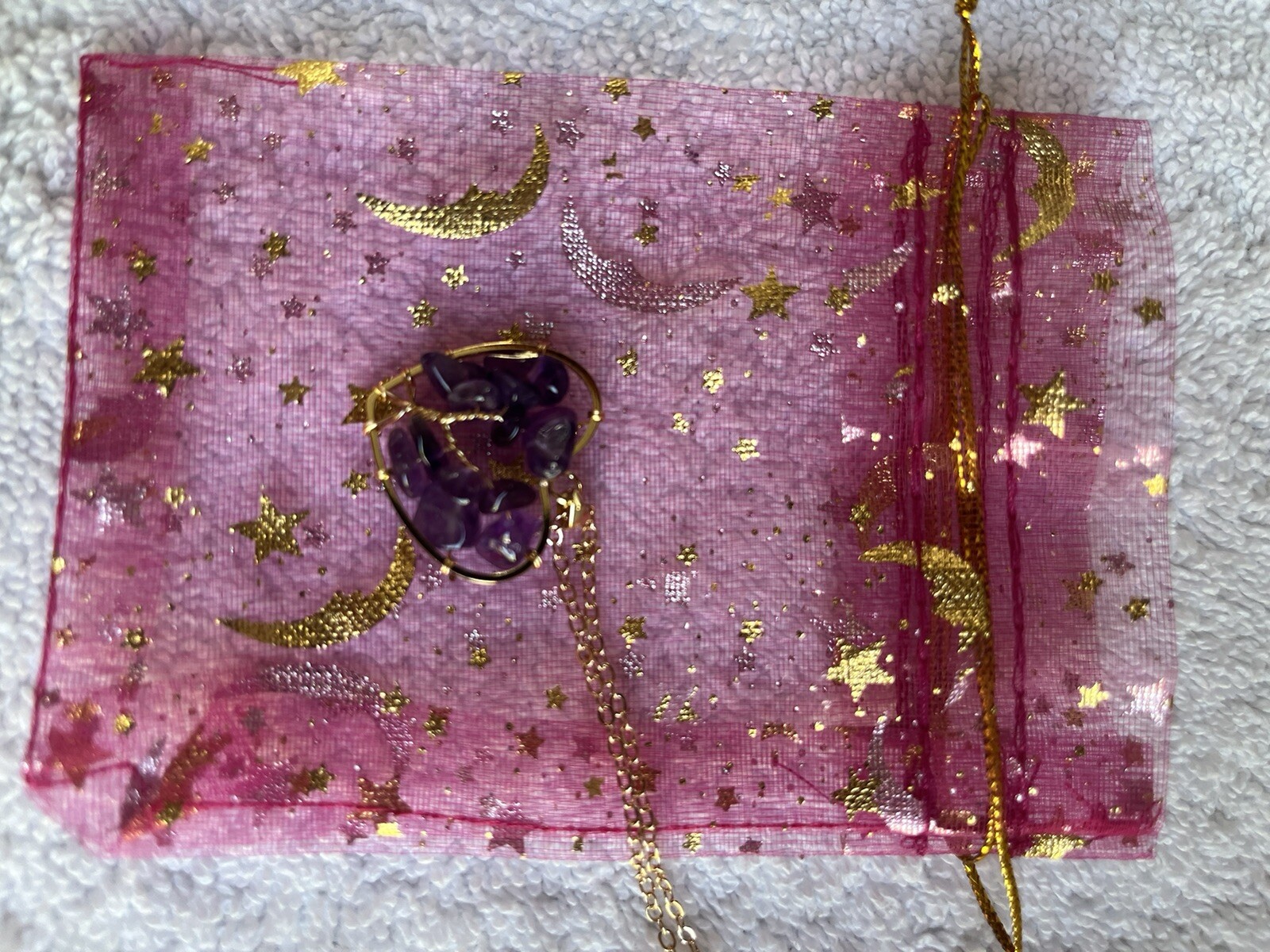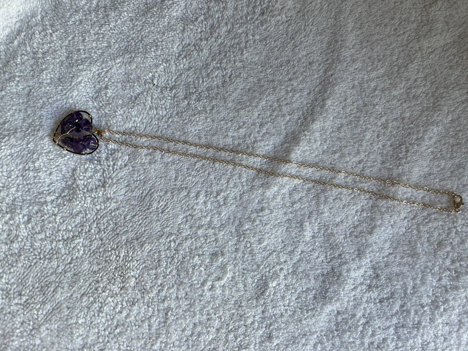 Girls heart shaped purple stone pendant on gold 18 inch necklace