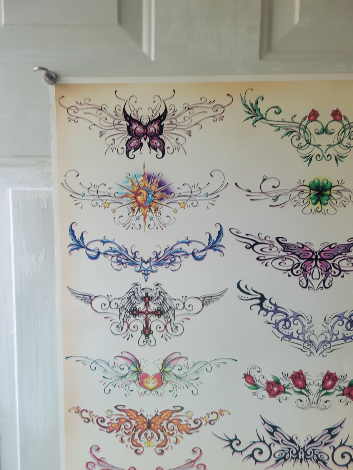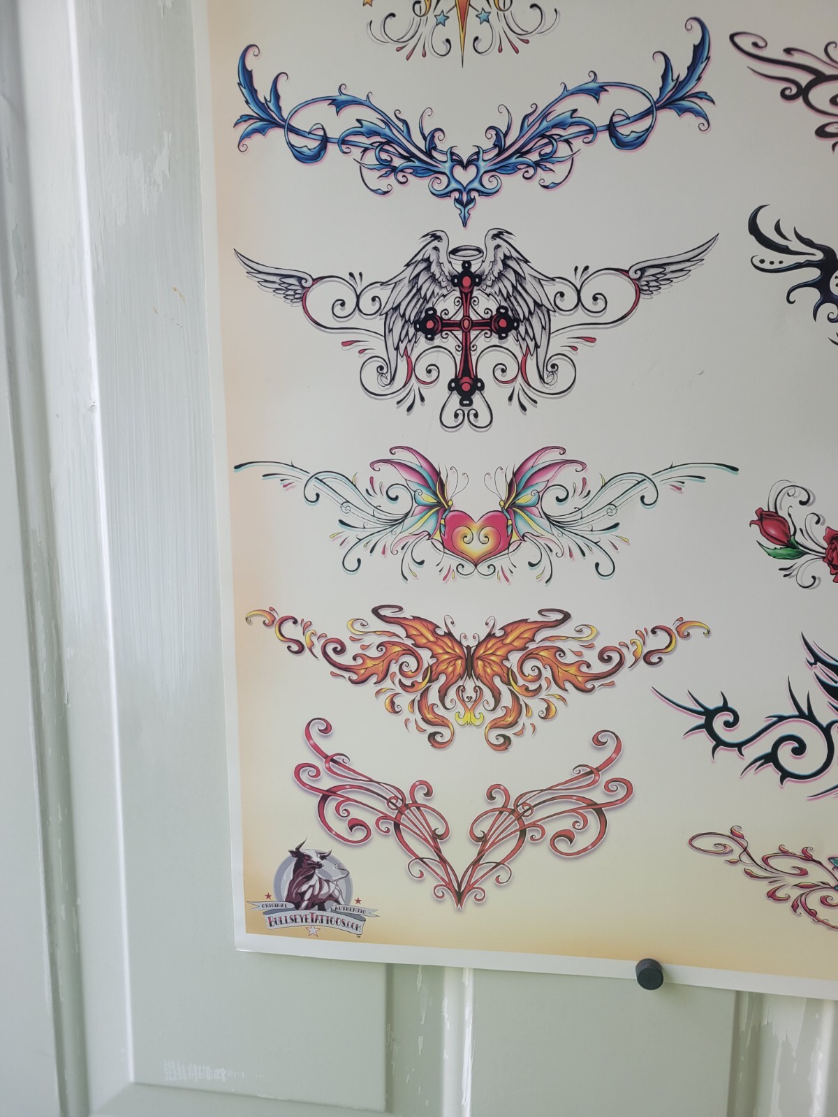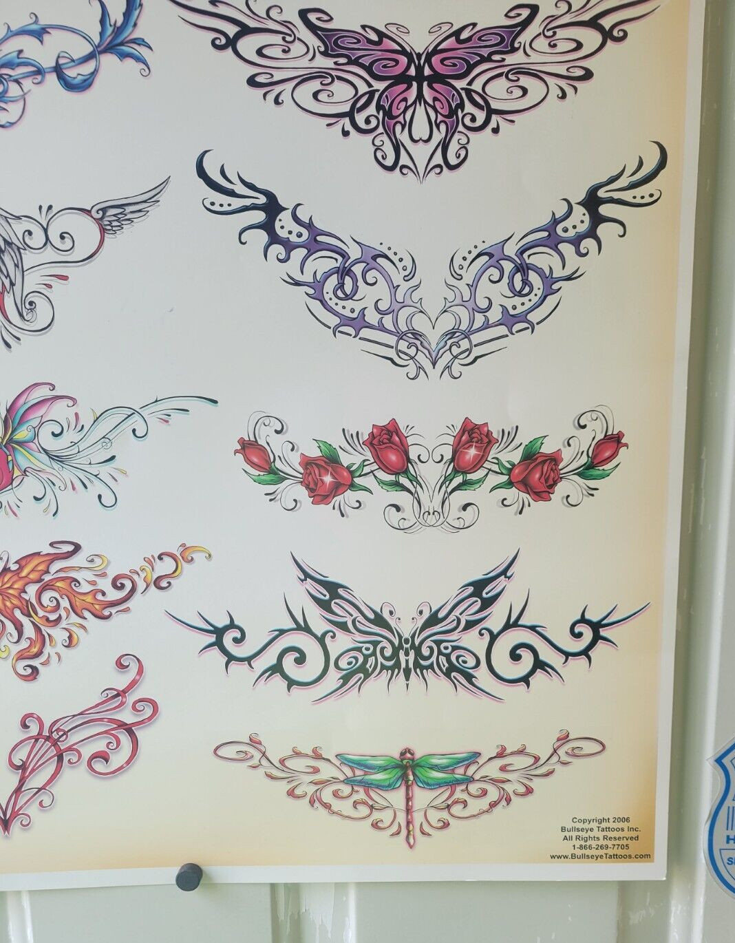 как выглядит BULLSEYE TATTOO FLASH POSTER 24 X 18 TRAMP STAMPS BUTTERFLY DRAGONFLY SHAMROCK фото