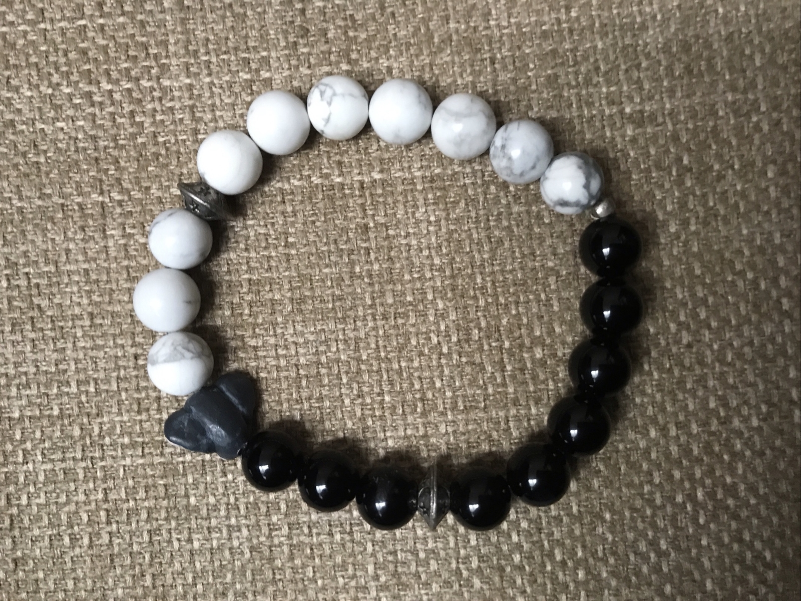 Elephant with Black Onyx and Howlite bead Bracelet