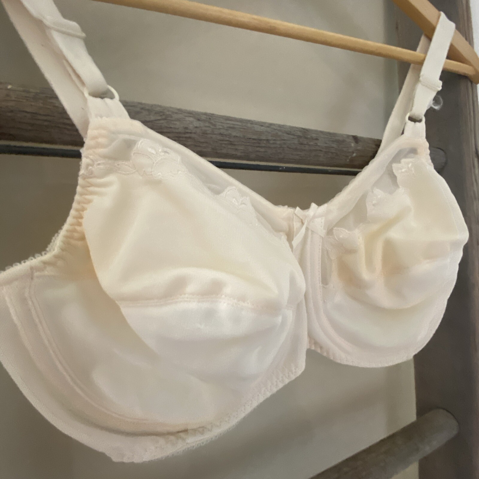 как выглядит BALI 36DD Ivory Satin Lace Underwire Bra Pretty Intimates 0180 VINTAGE 80s фото