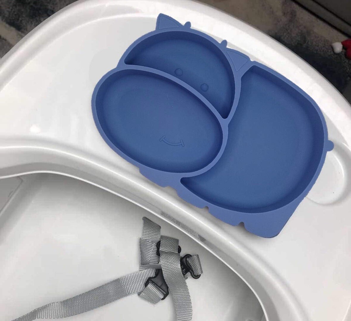 как выглядит Two Suction Plate for Baby Boy Divided Toddler Plate 100 Food Grade Blue фото