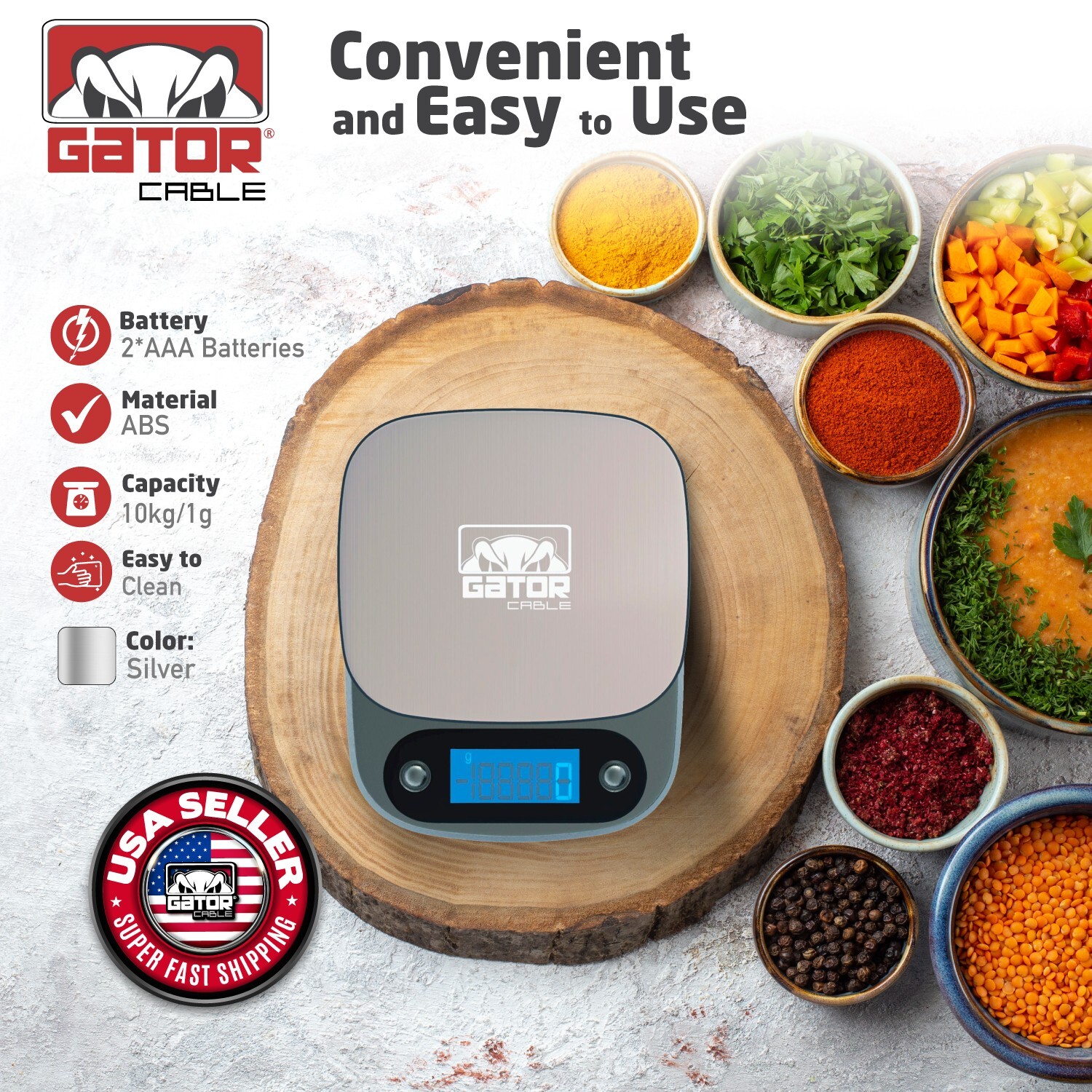 Модель: Gator Cable Digital Kitchen Food Weight Scale Medium Gray