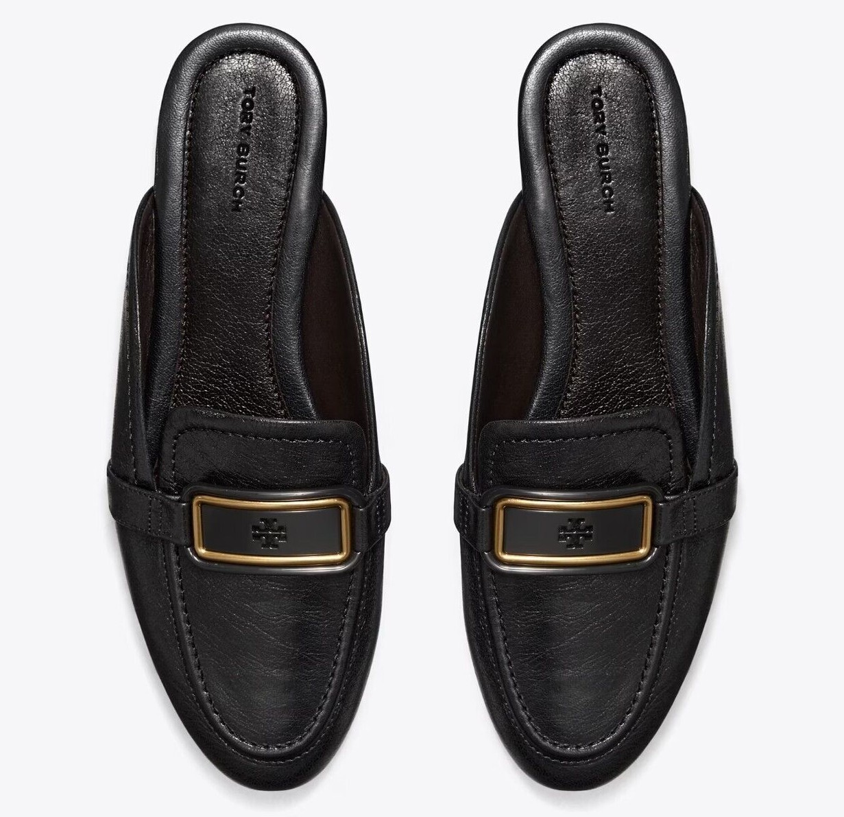 Tory Burch NIB 298 Georgia Backless Loafer Flats Mules Black Gold Logo